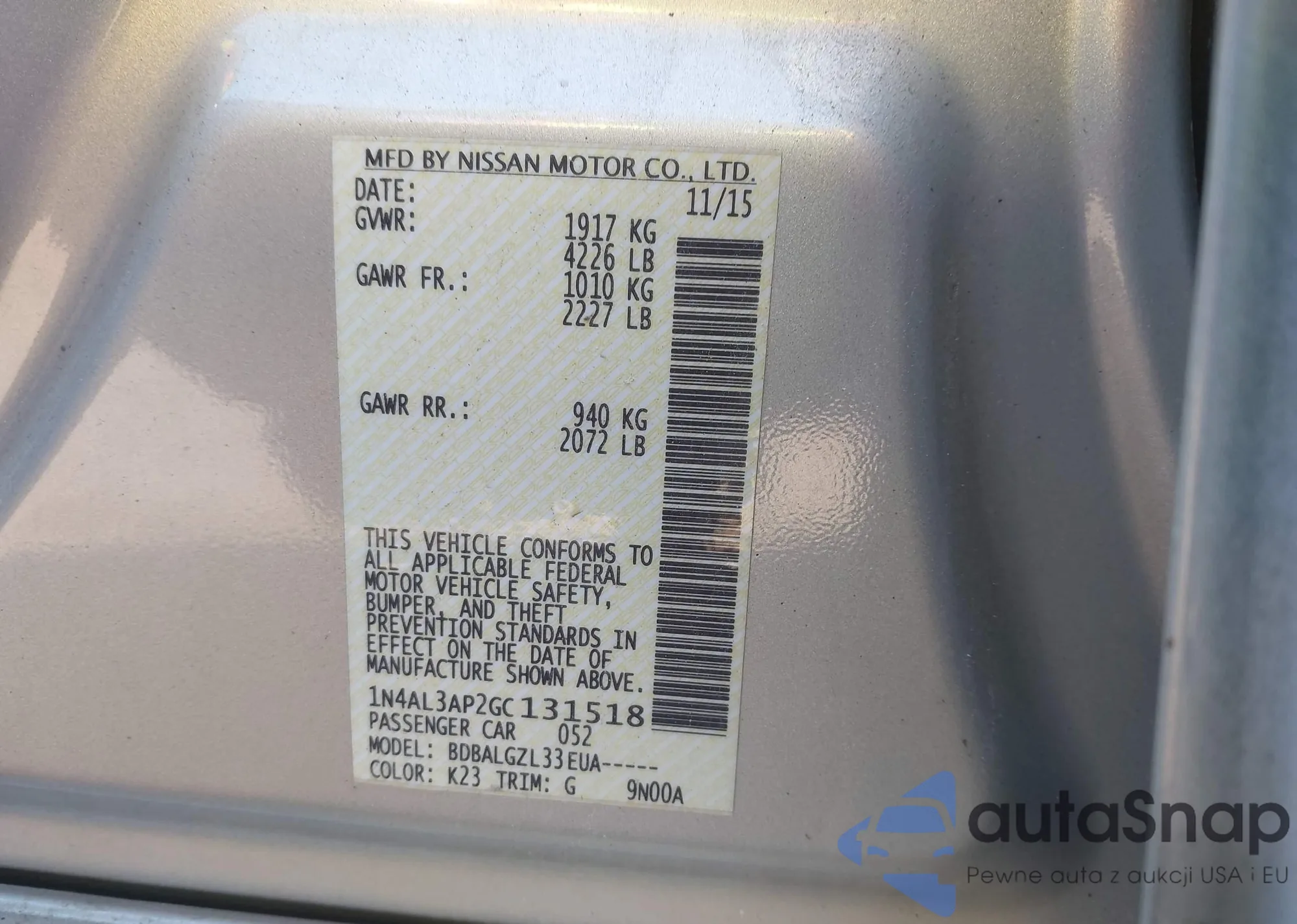 • VIN 1N4AL3AP2GC131518