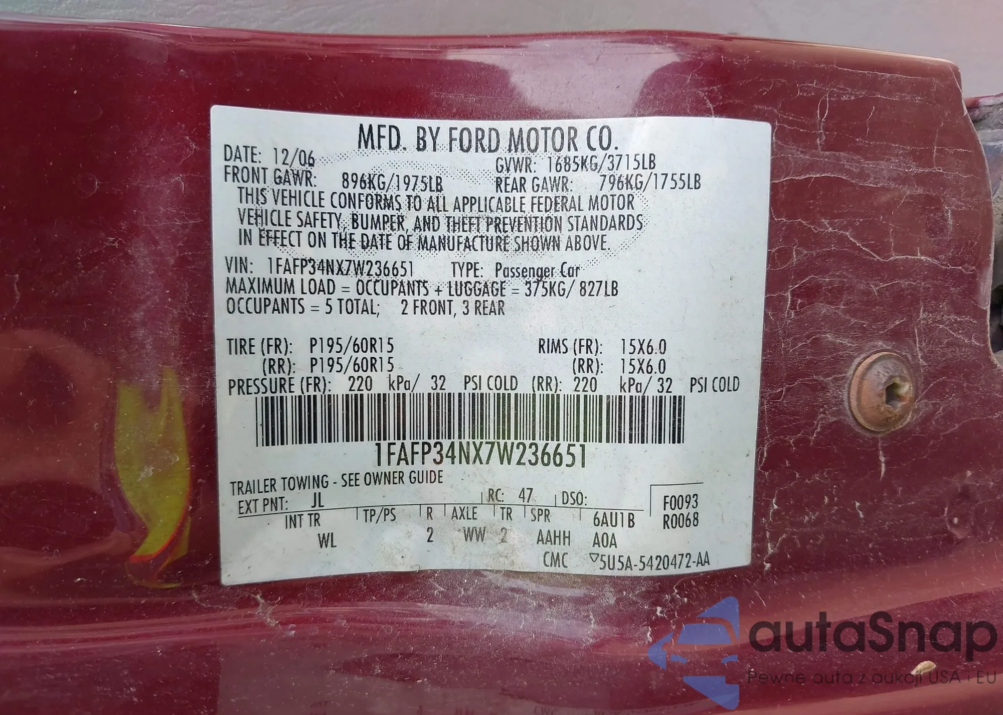 • VIN 1FMFK17547LA31591