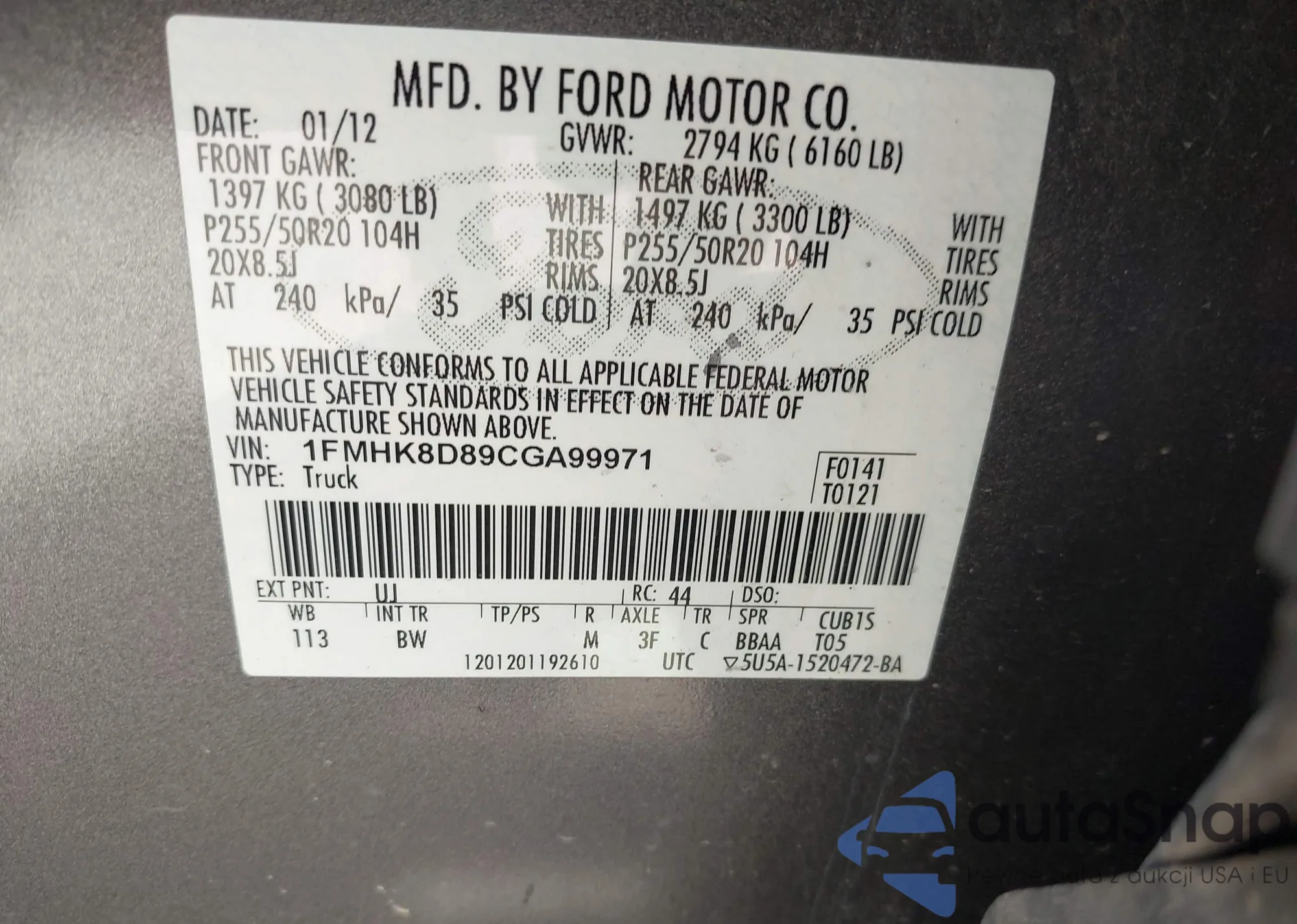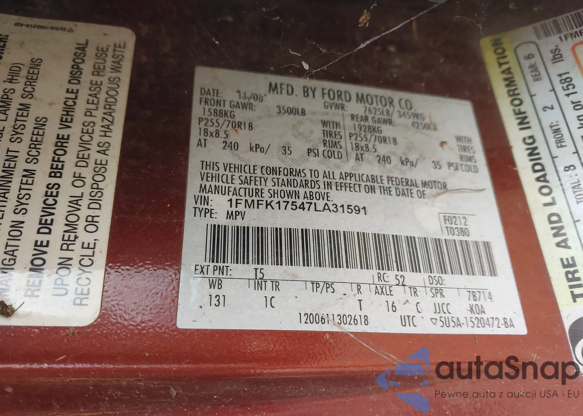 LOT: 43012452 VIN: 1FMFK17547LA31591
