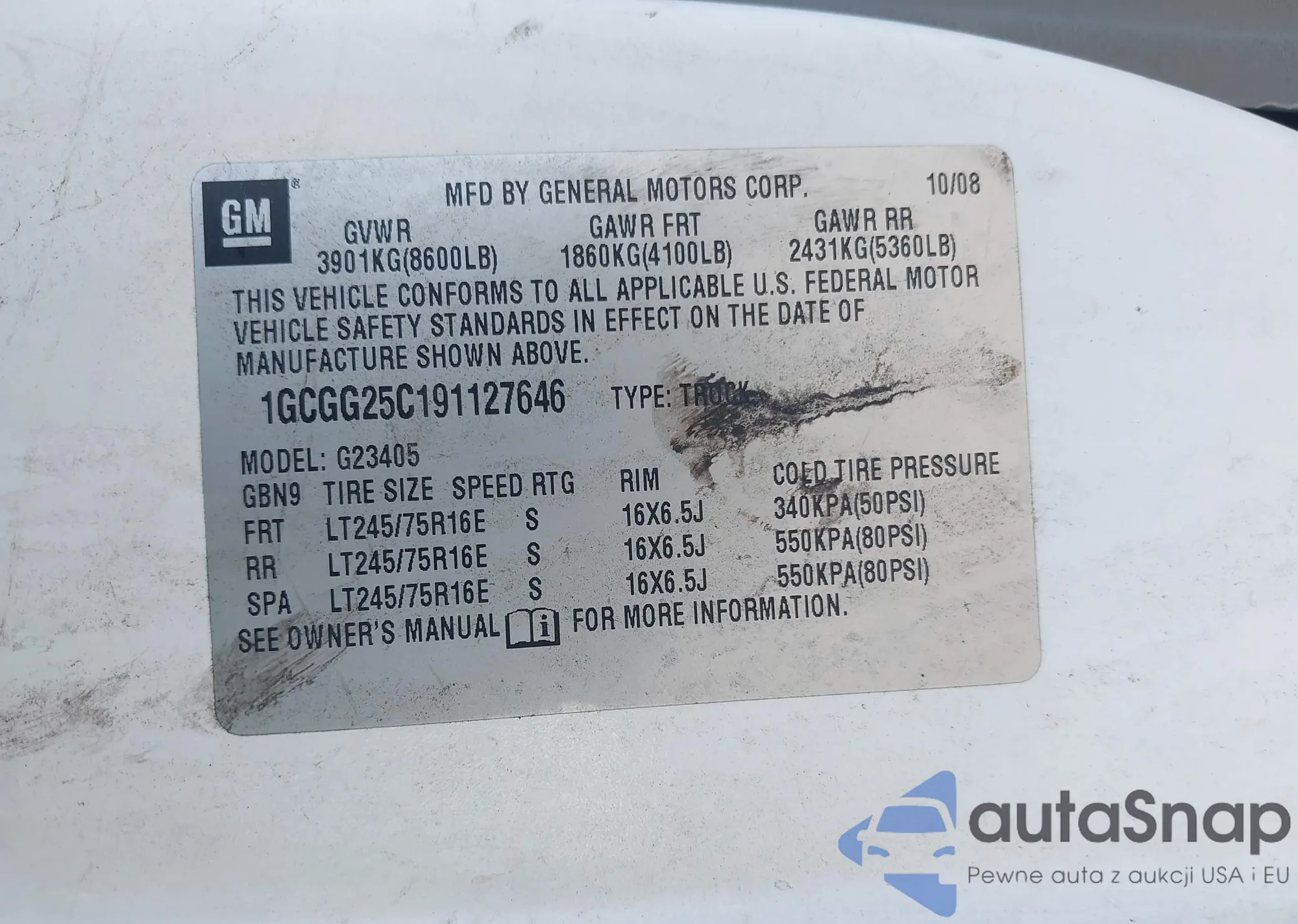 LOT: 43131431 VIN: 1GCGG25C191127646