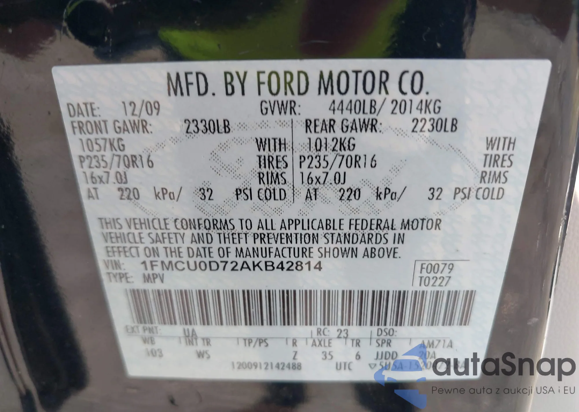 • VIN 1FMCU0D72AKB42814