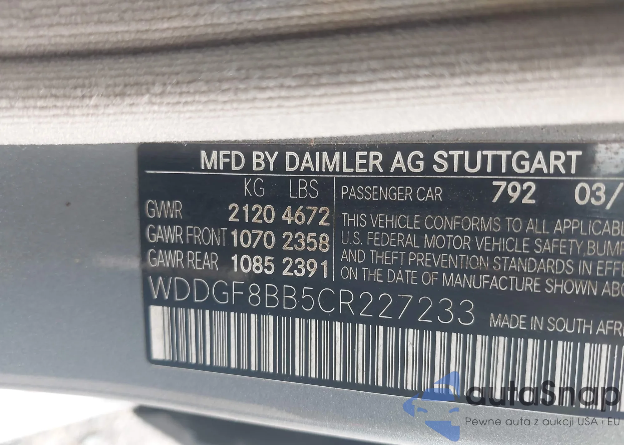 • VIN WDDGF8BB5CR227233