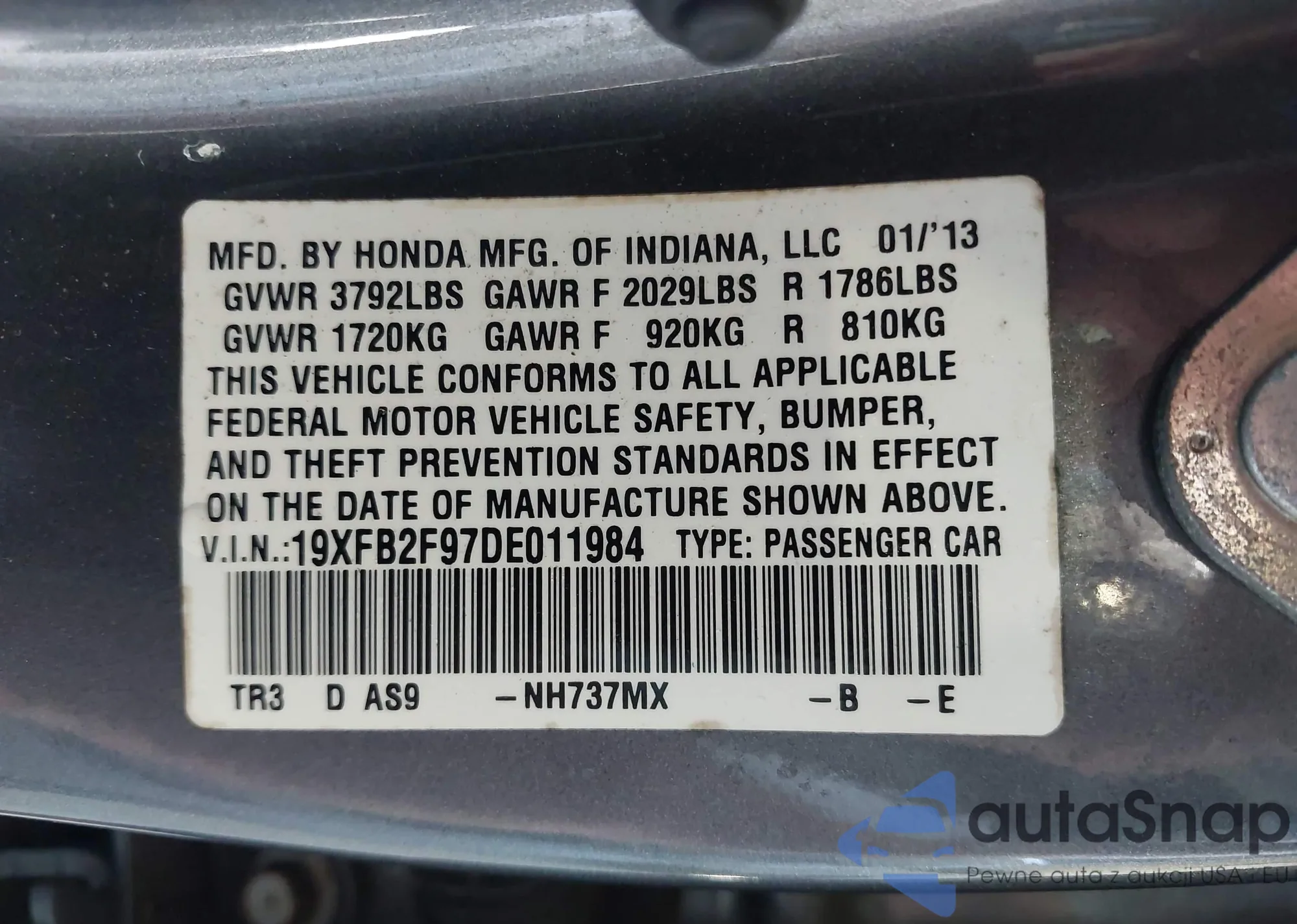 • VIN 19XFB2F97DE011984