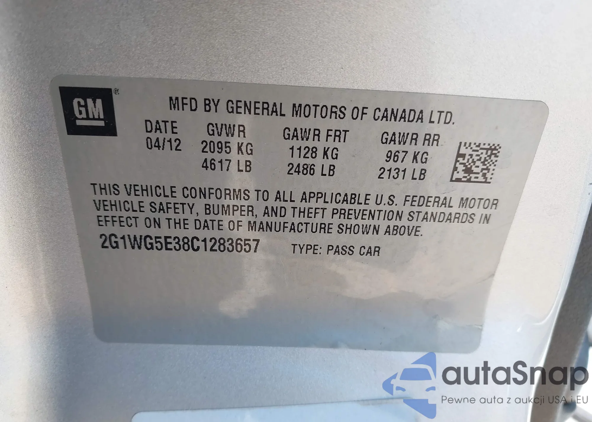 LOT: 43004441 VIN: 1G1PC5SB3D7251862