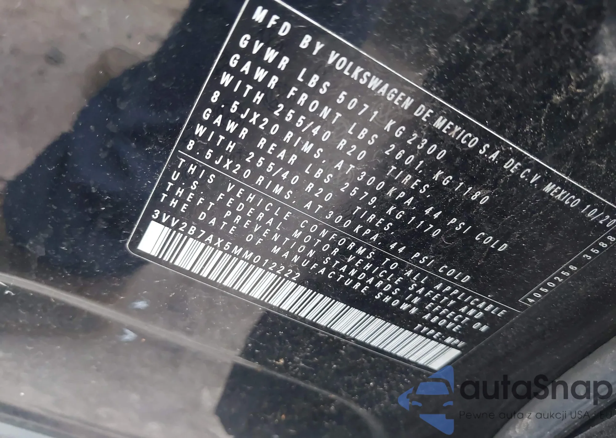 • VIN 3VV2B7AX5MM012222