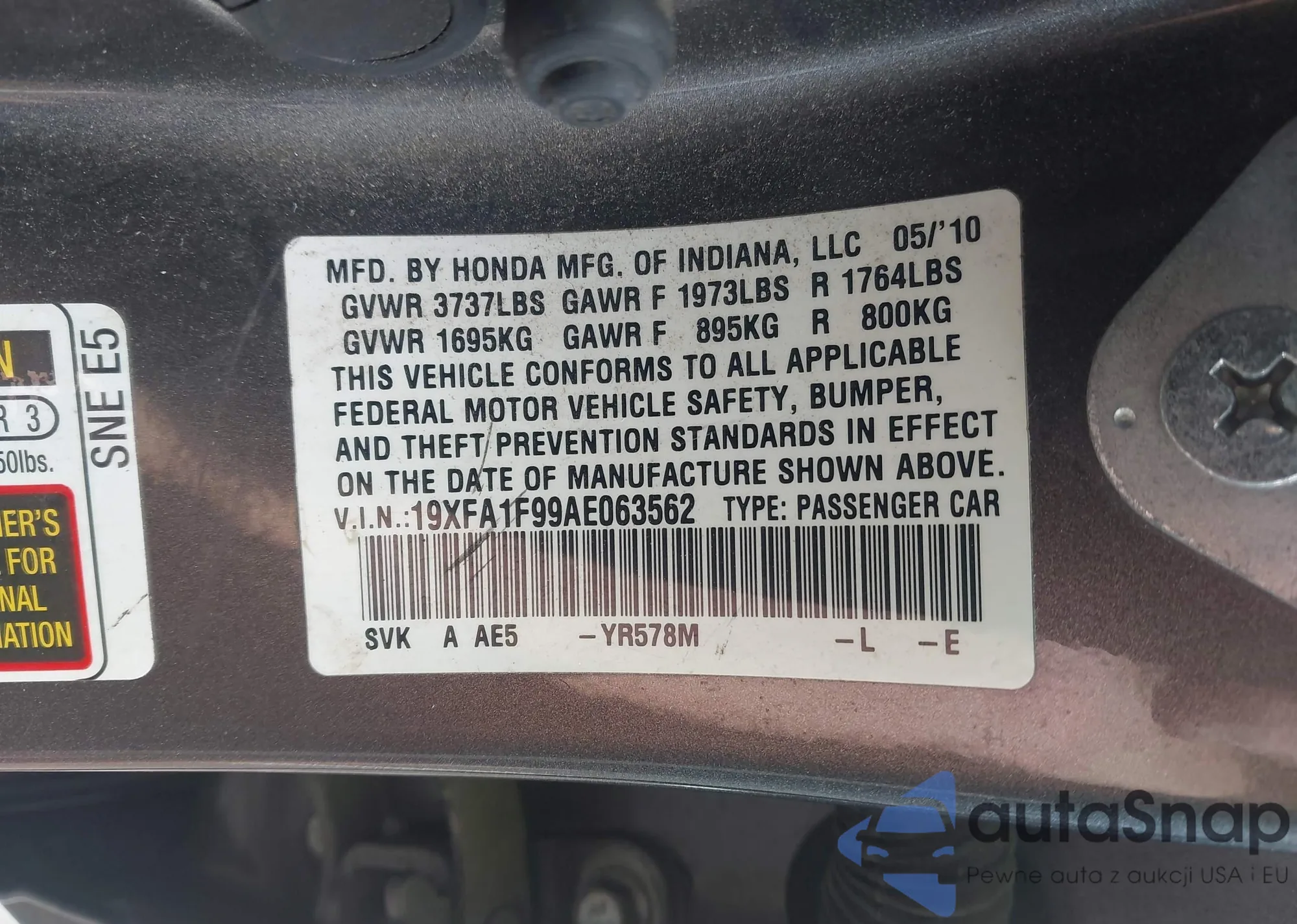 • VIN 19XFA1F99AE063562