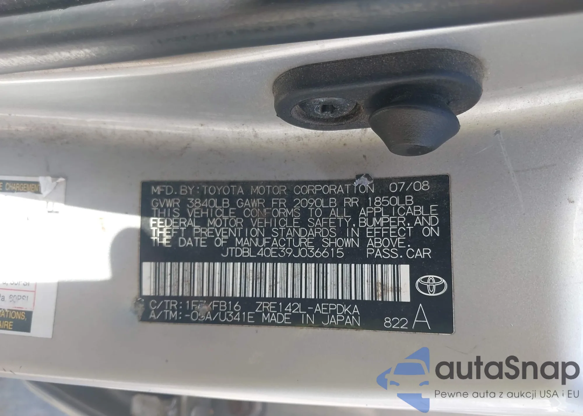 LOT: 43125388 VIN: JTDBL40E39J036615