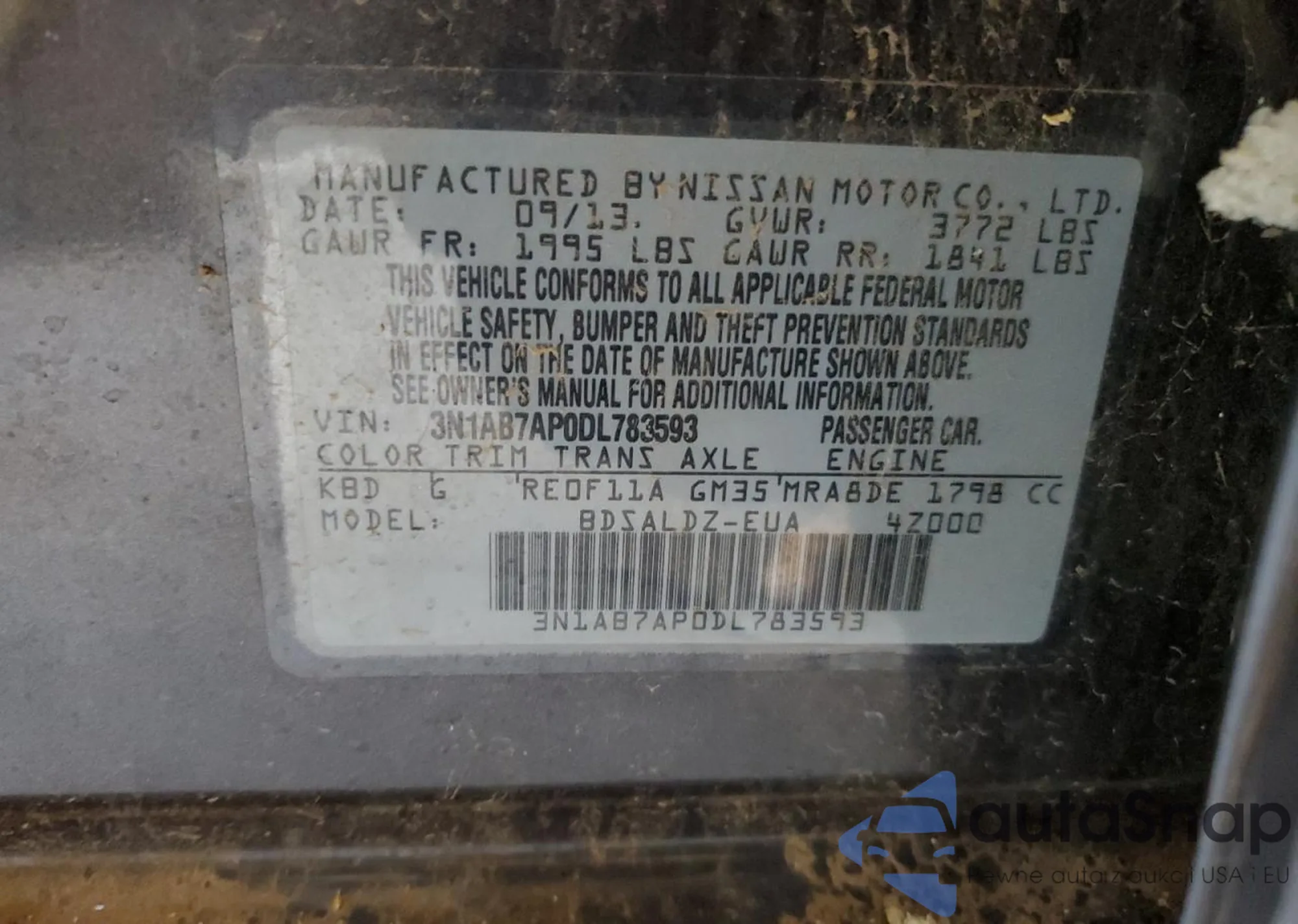 • VIN 3N1AB7AP0DL783593