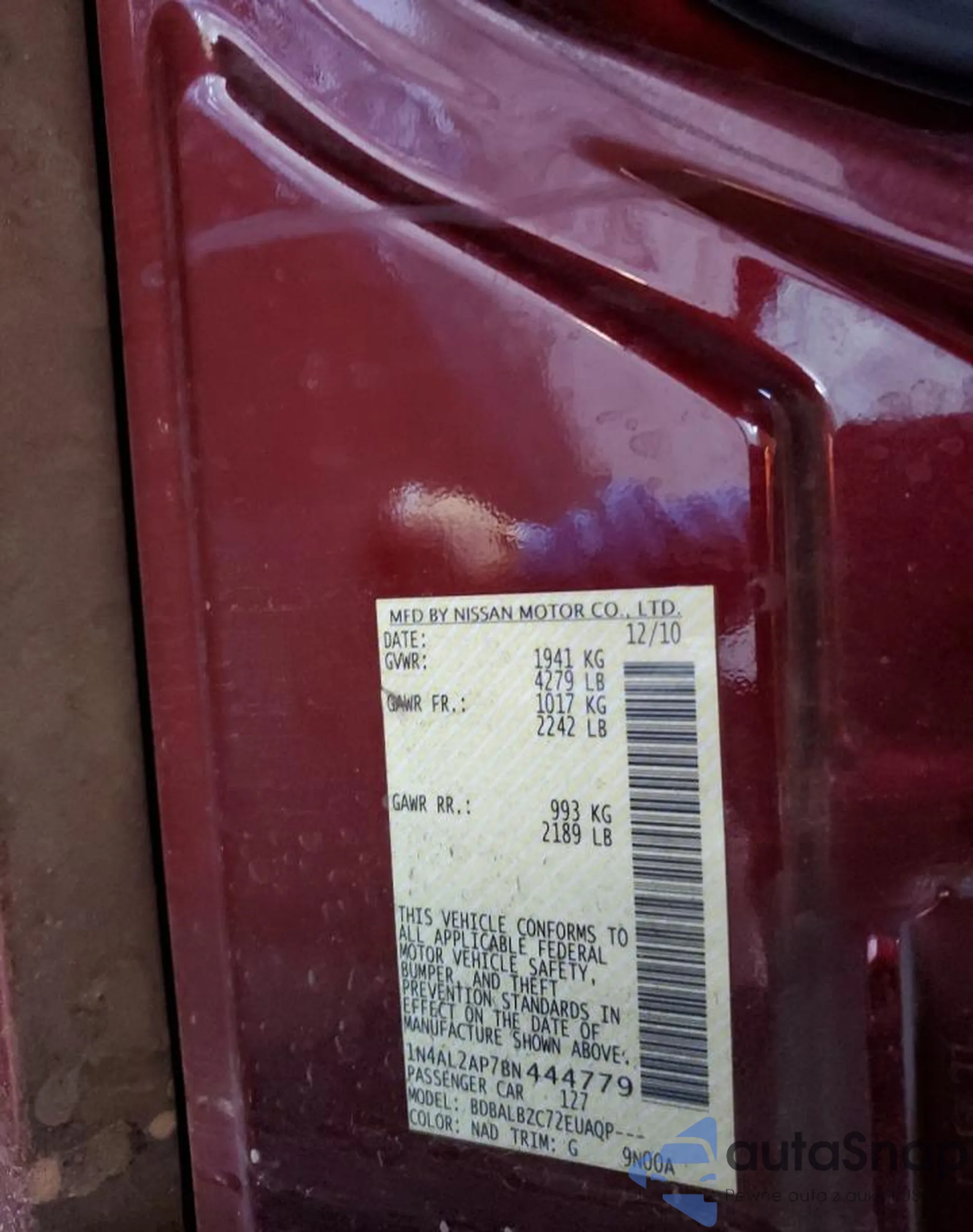 • VIN 1N4AL2AP7BN444779