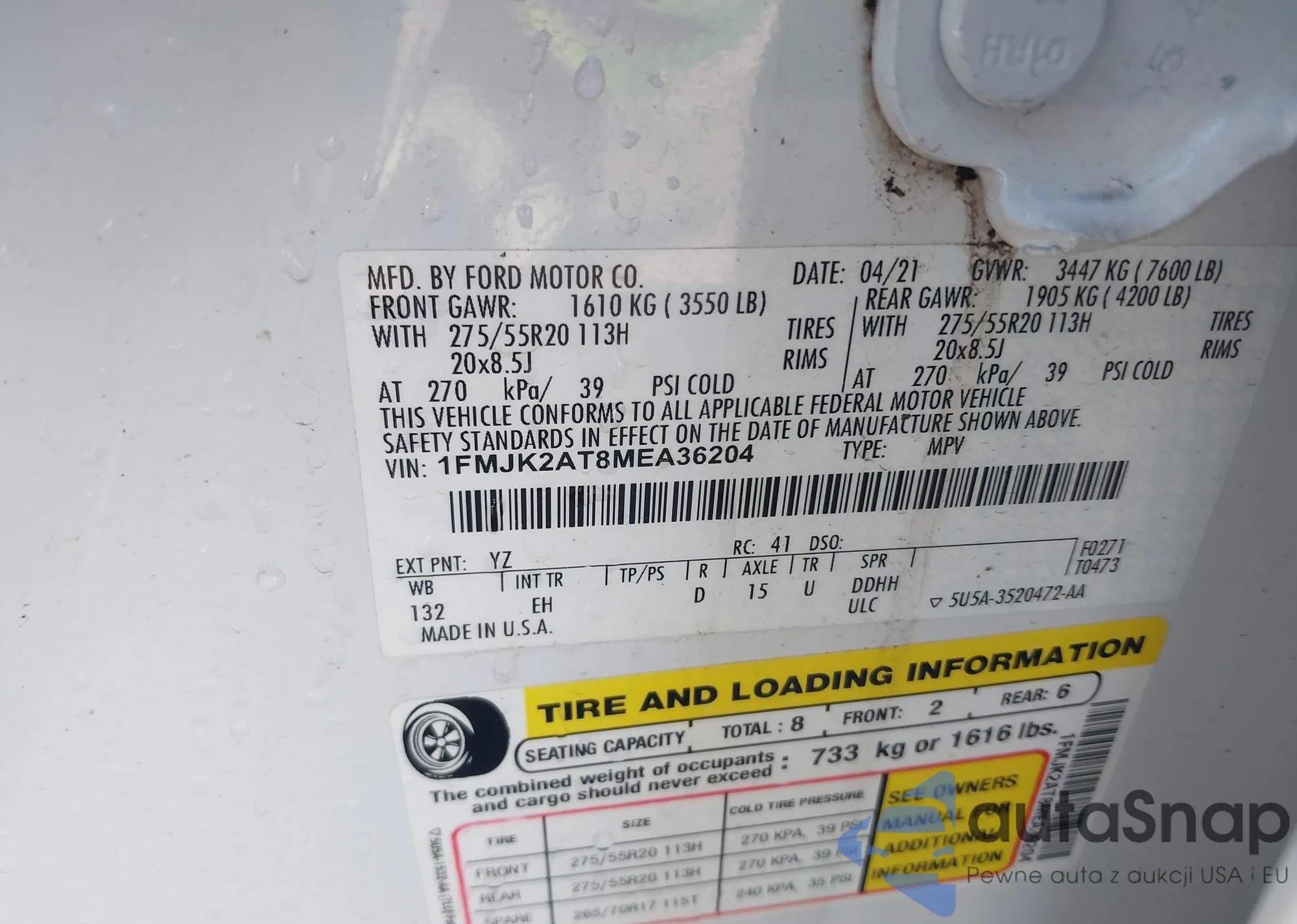 • VIN 1FMSK8DH5LGB25570