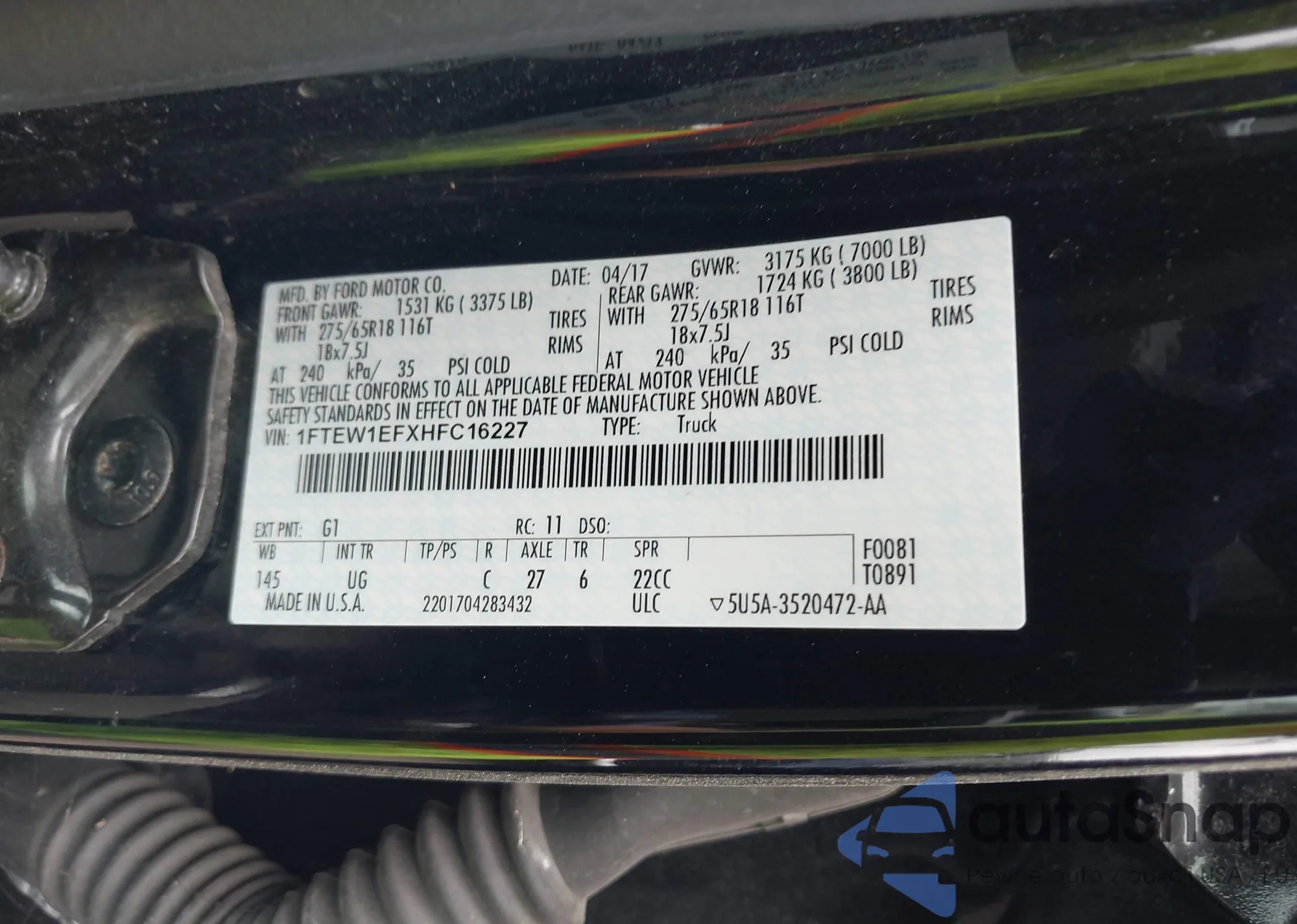 LOT: 43118803 VIN: 1FTEW1EFXHFC16227