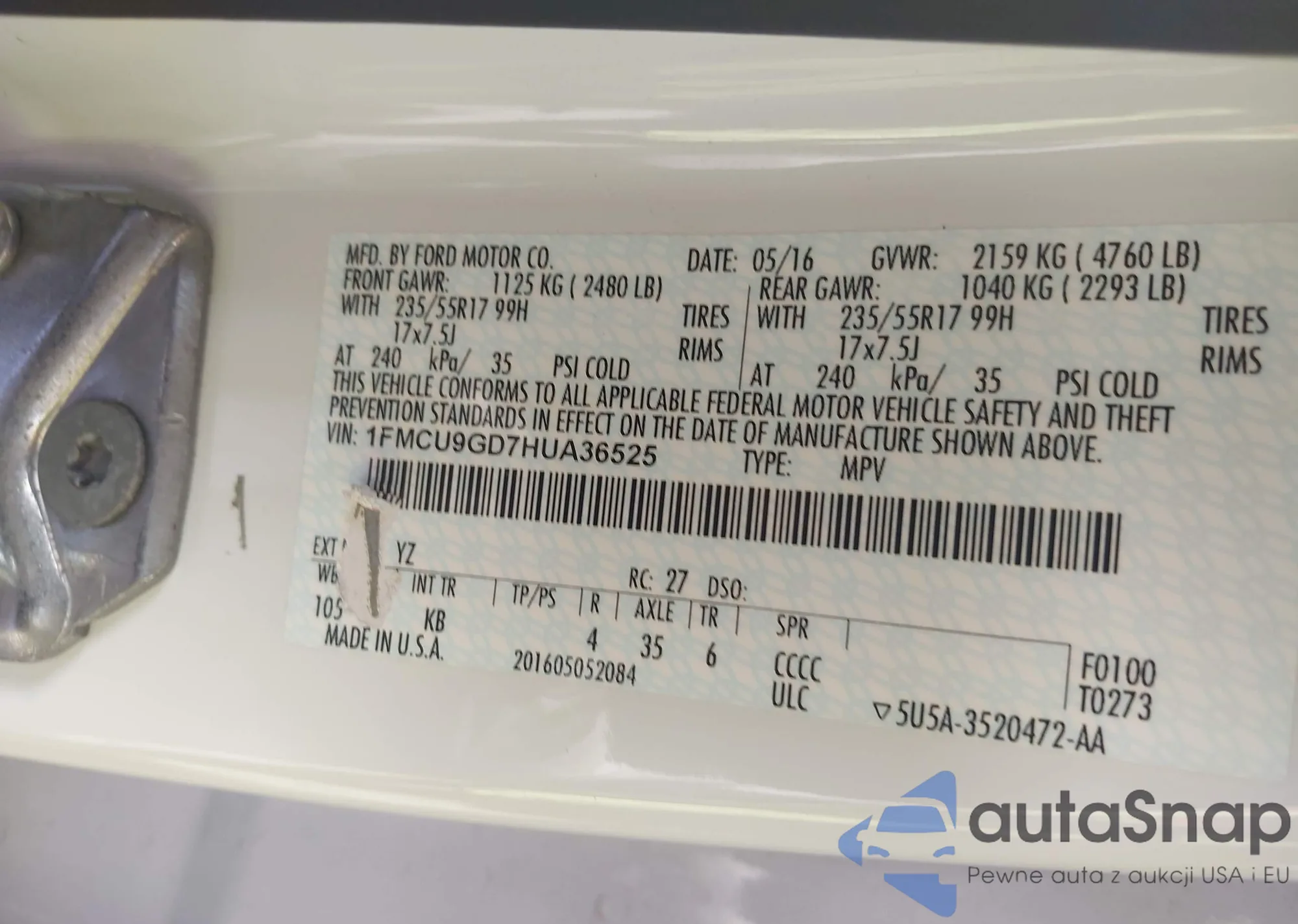• VIN 1FMCU9GD7HUA36525