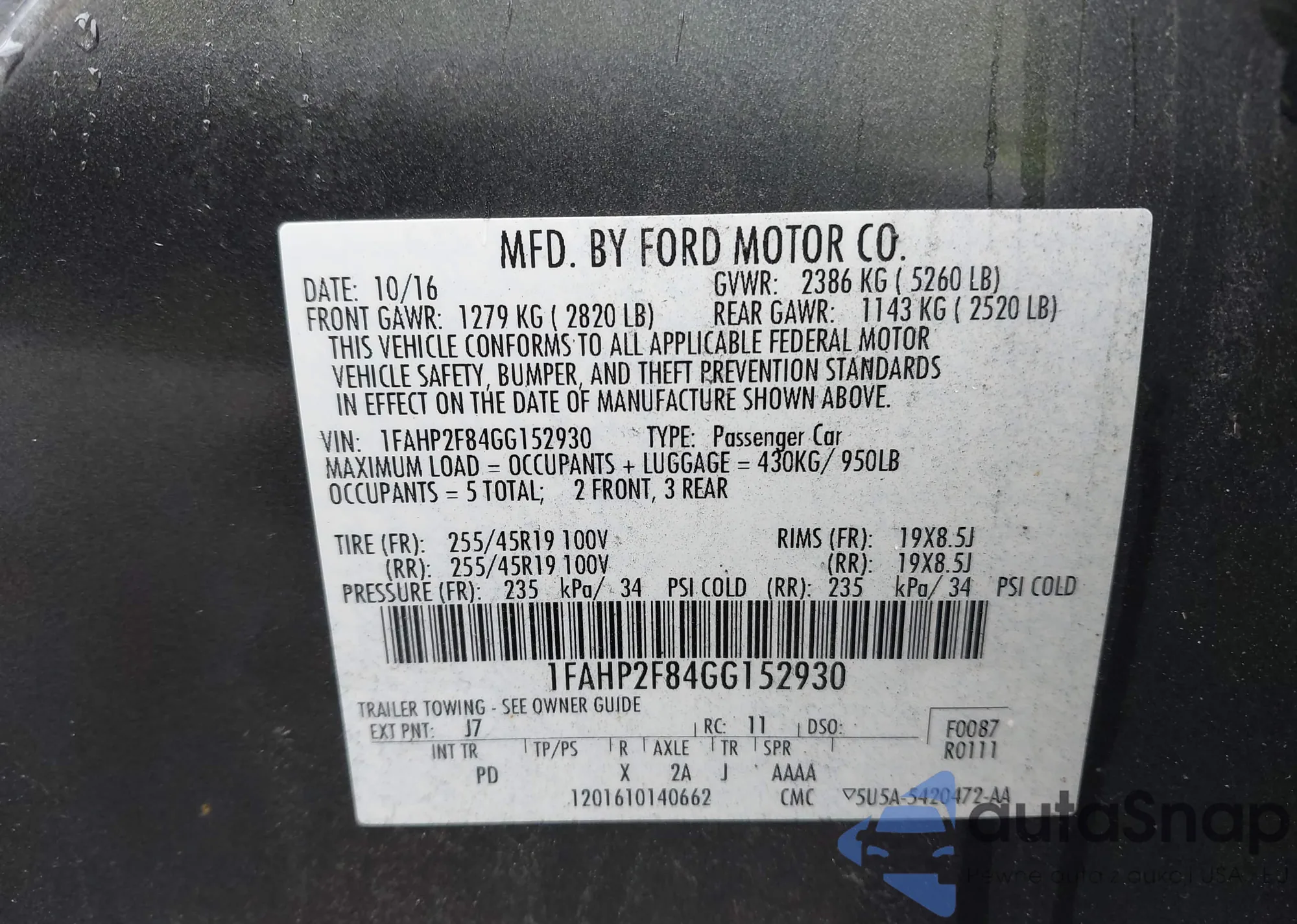 LOT: 42926759 VIN: 3FAHP0JG1BR171391