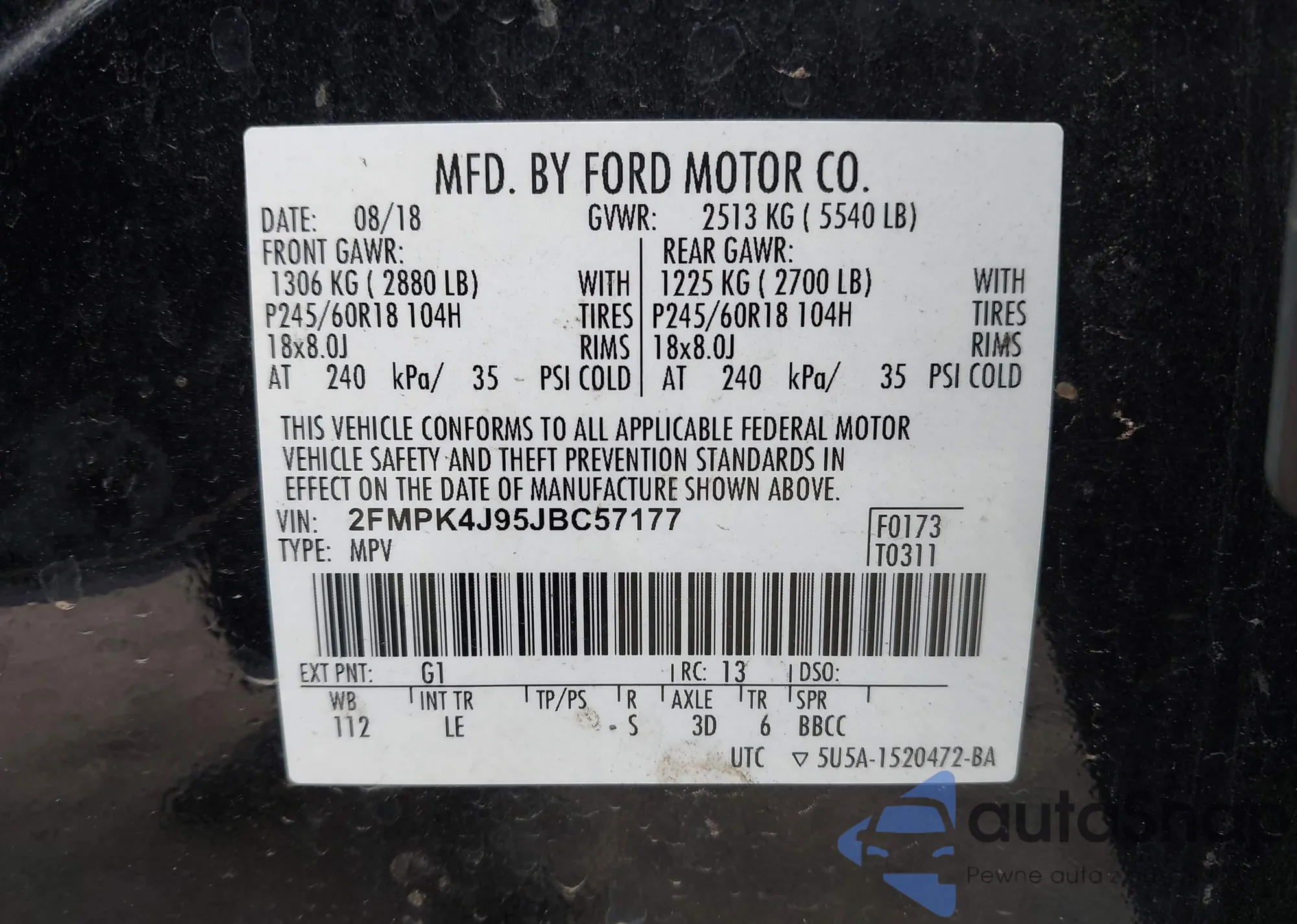 • VIN 2FMPK4J95JBC57177