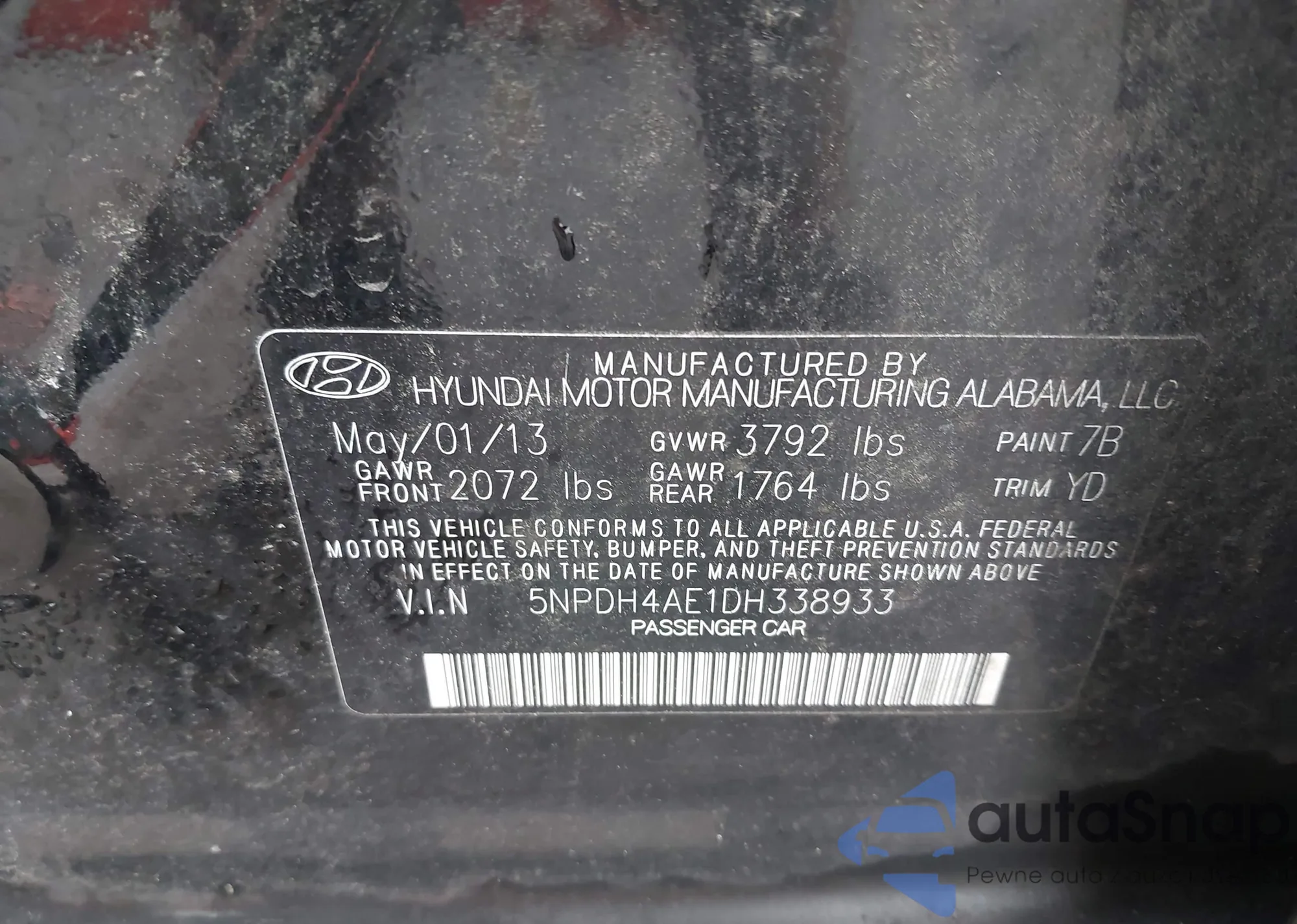 • VIN 5NPDH4AE1DH338933