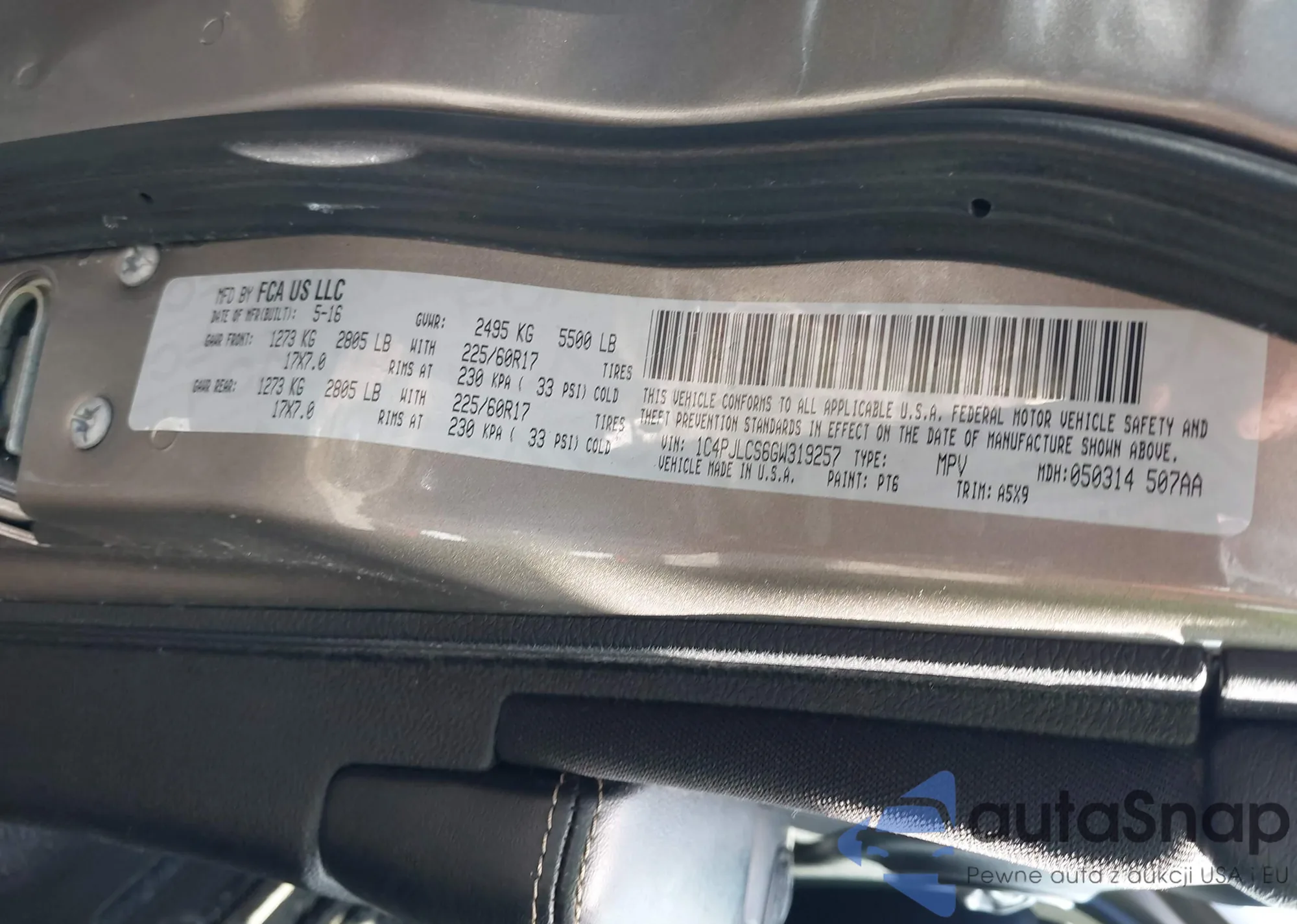 LOT: 42507696 VIN: 1C4PJLCS6GW319257