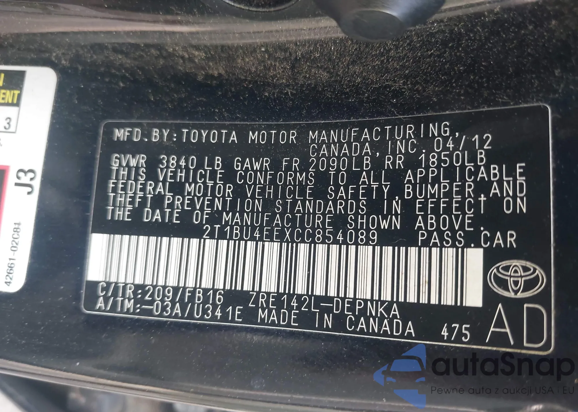 • VIN 2T1BU4EEXCC854089