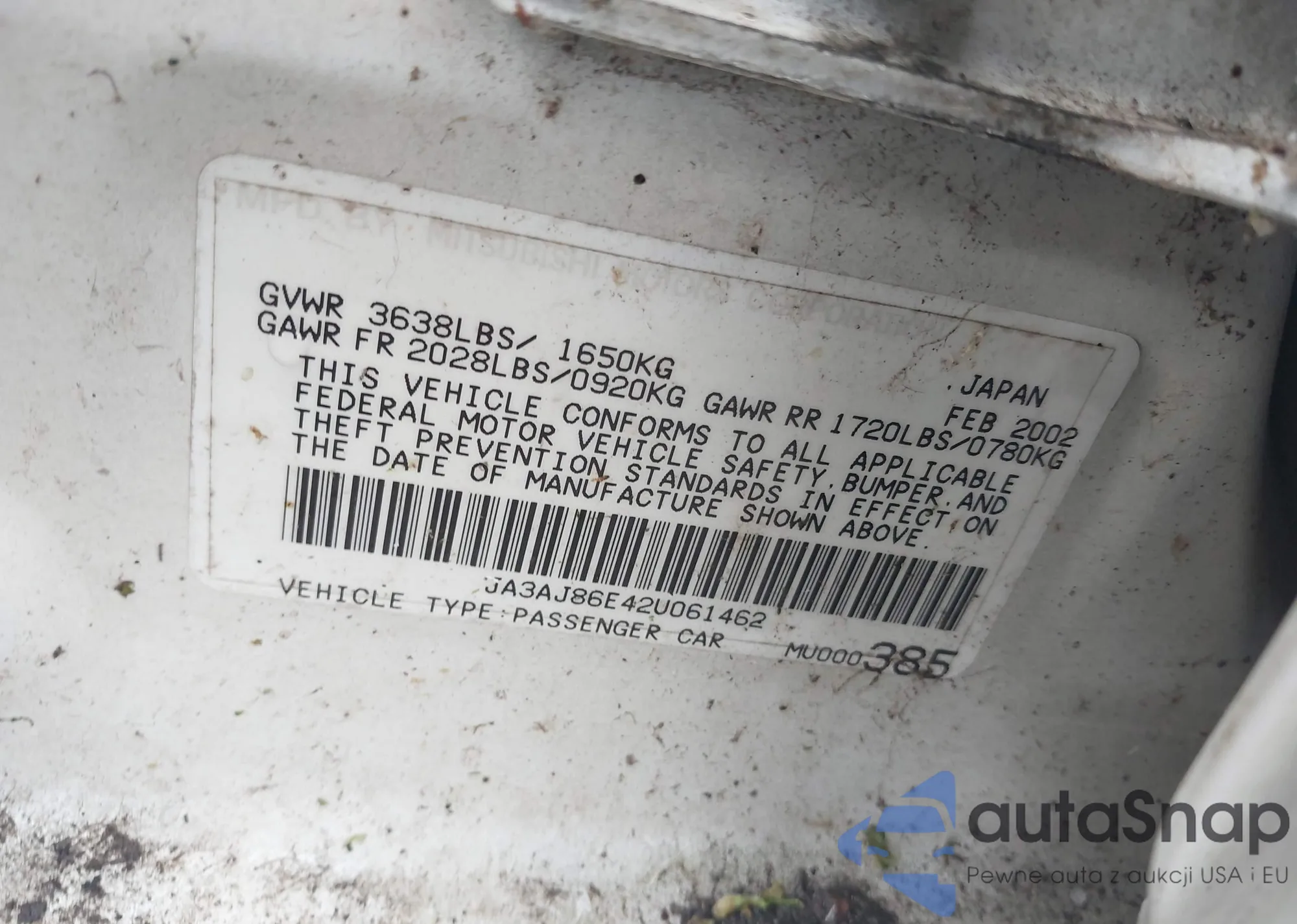 • VIN JA3AJ86E42U061462
