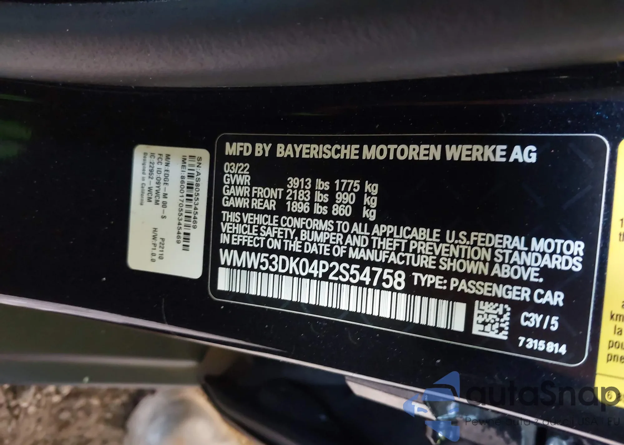 LOT: 42914114 VIN: WBAVM1C54FV318221