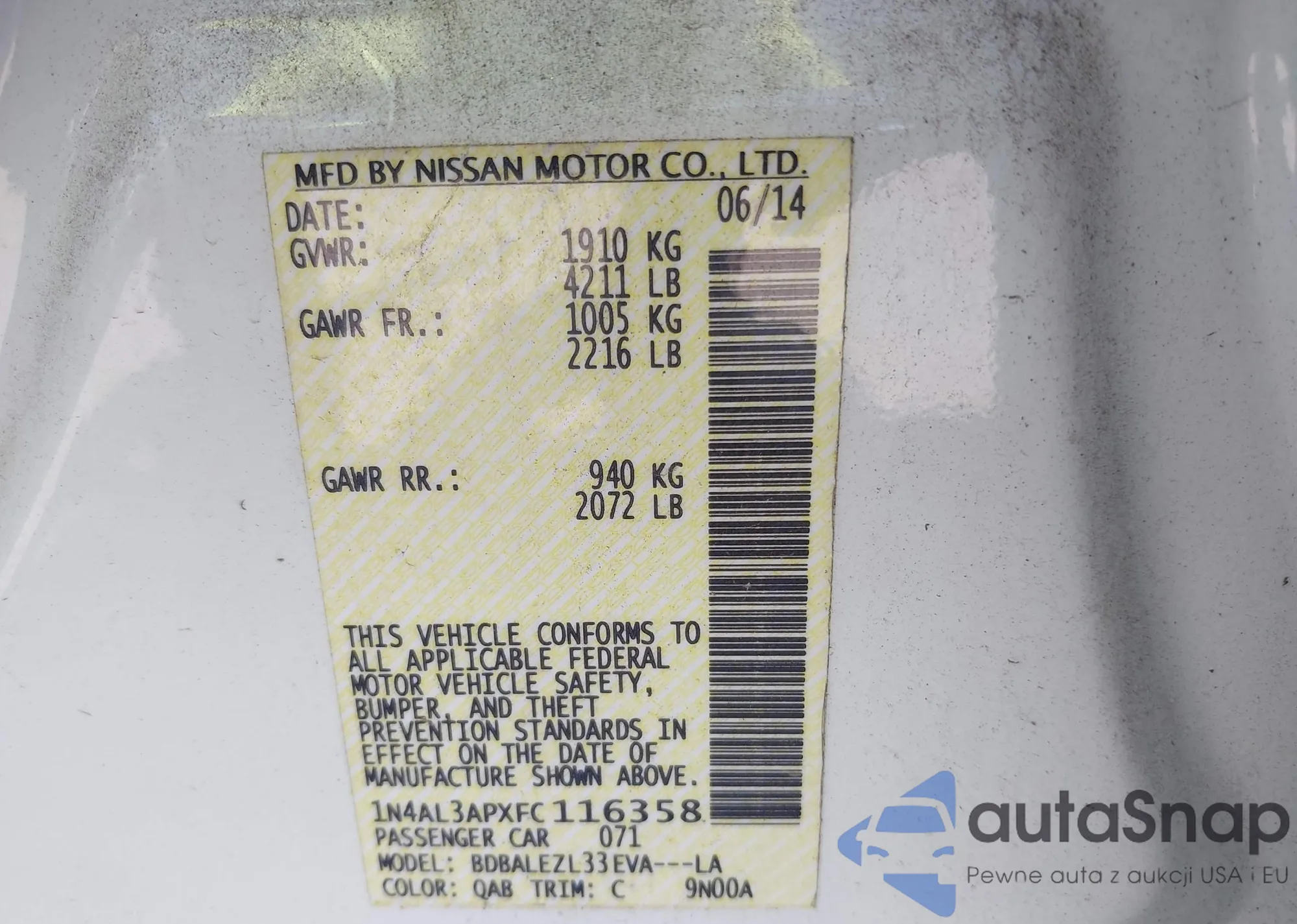 LOT: 42928979 VIN: 1N4AL3APXFC116358