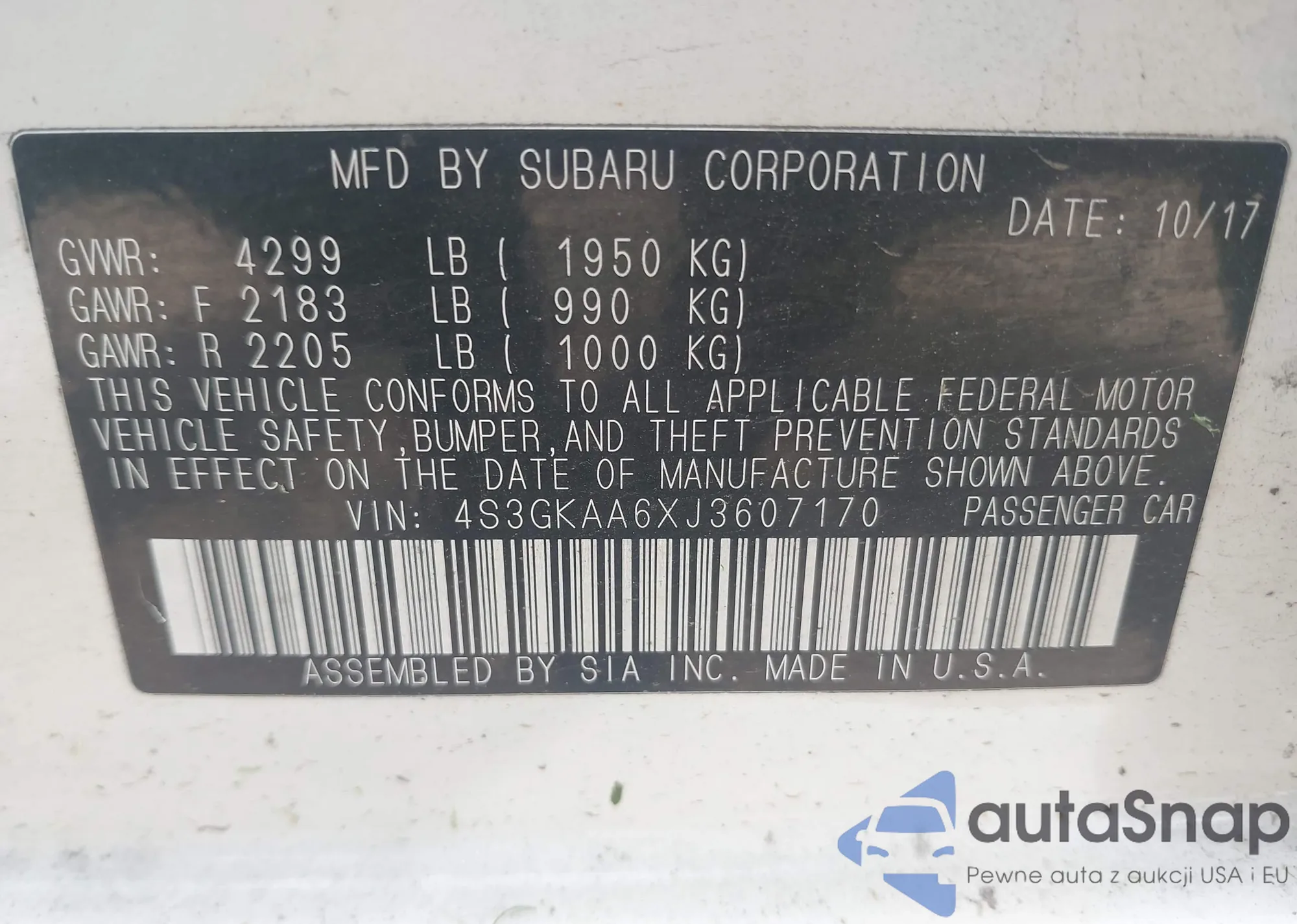 • VIN 4S3GKAA6XJ3607170