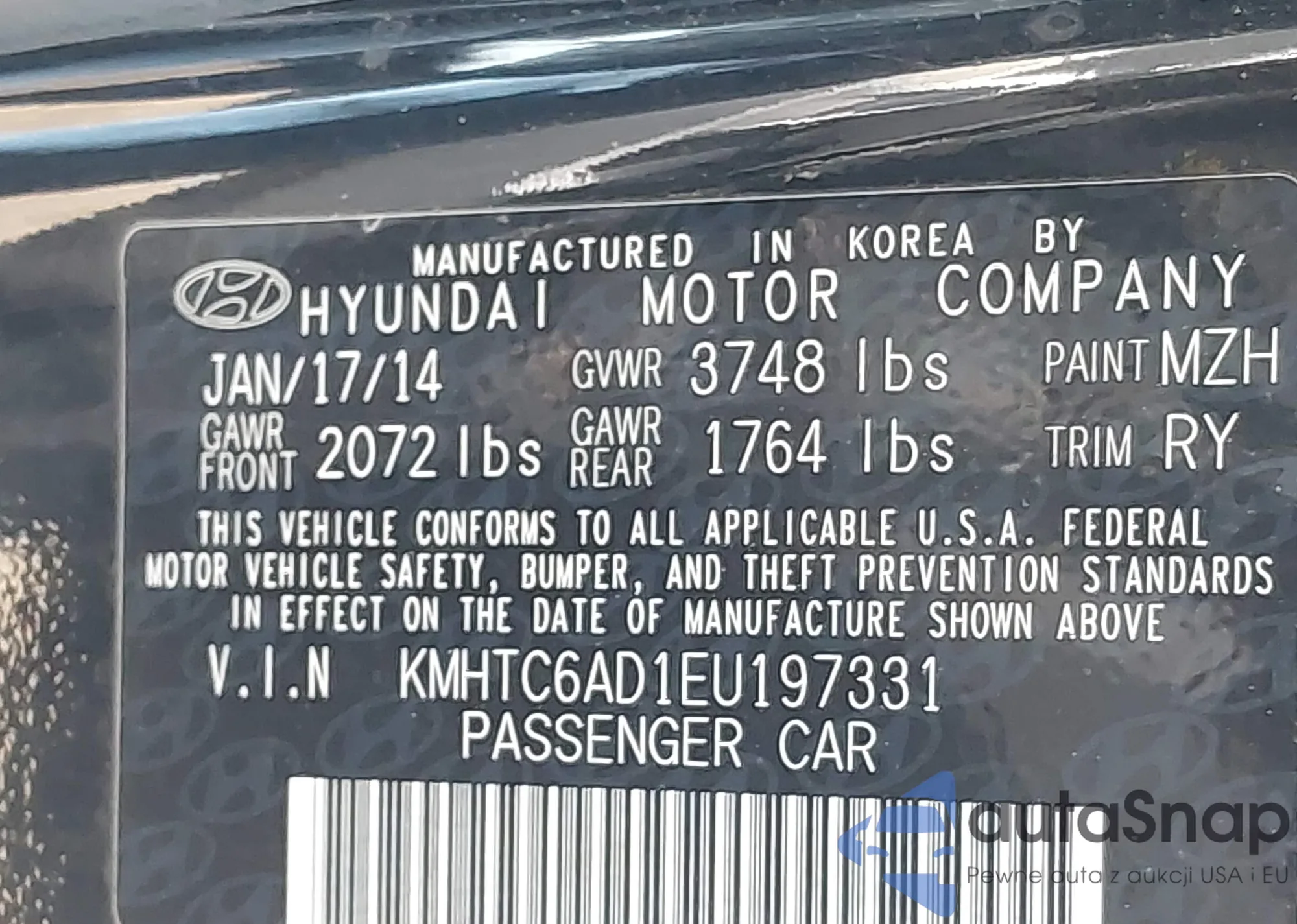 • VIN KMHTC6AD1EU197331
