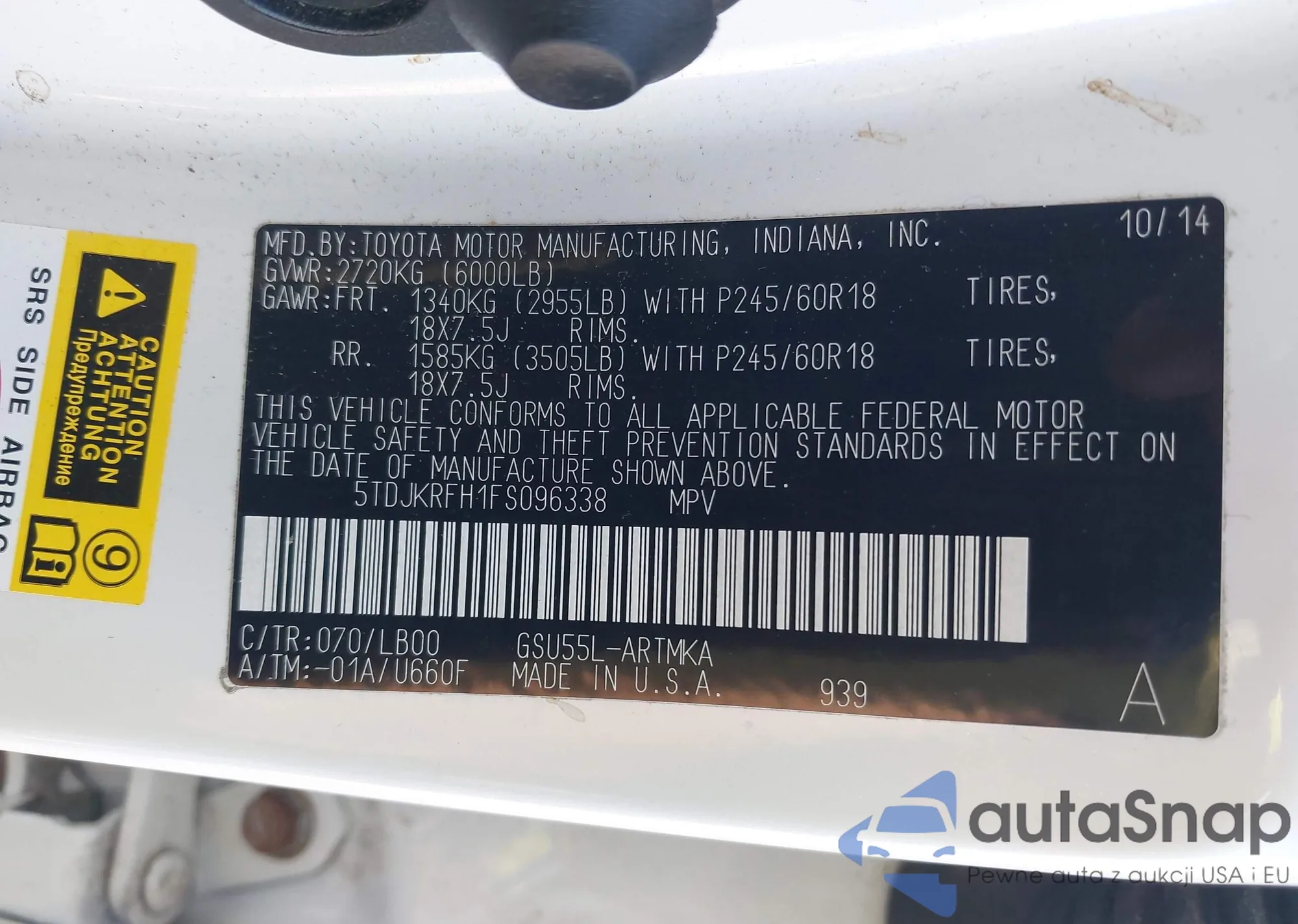 • VIN 5TDJKRFH1FS096338