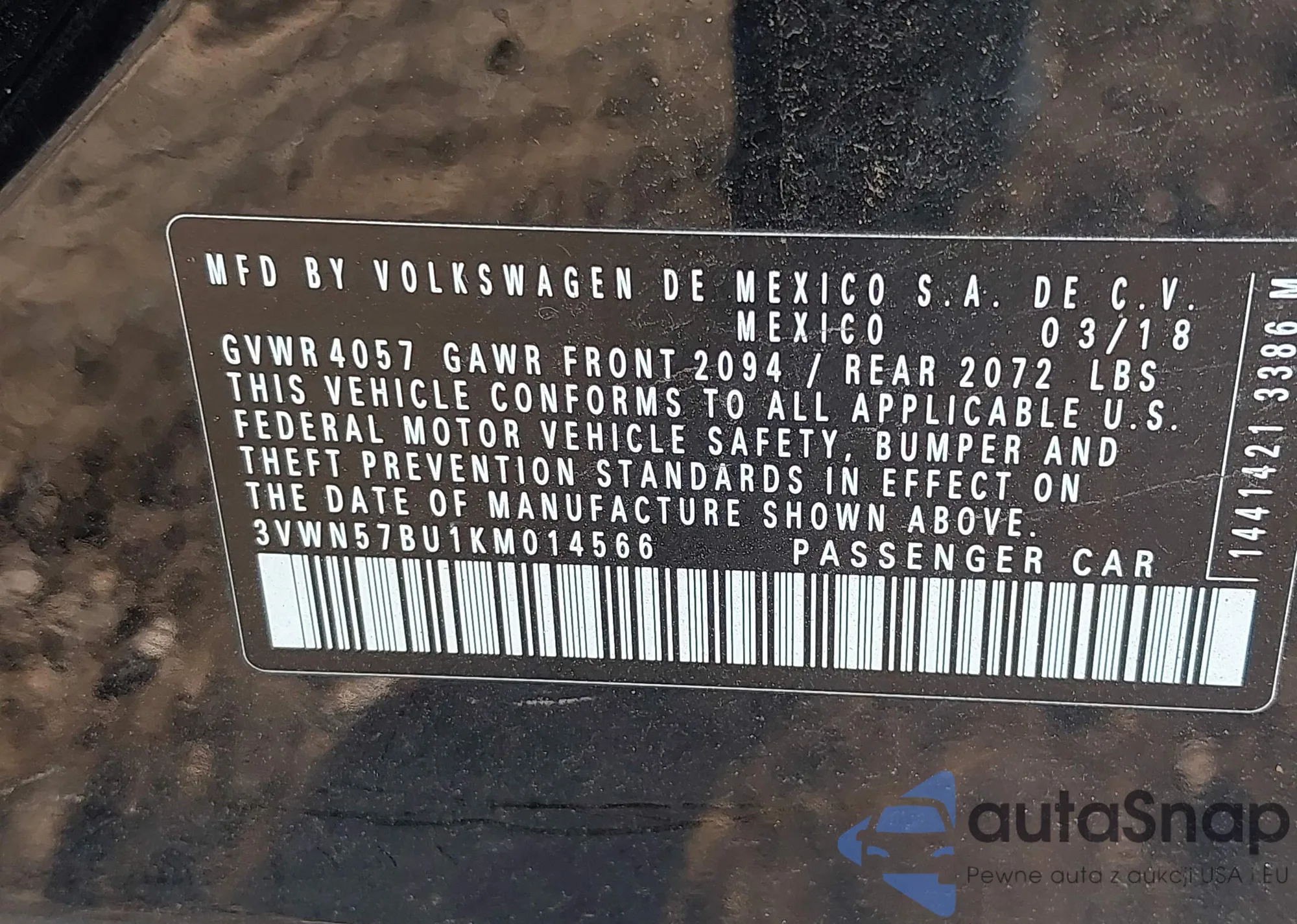 • VIN 3VWN57BU1KM014566