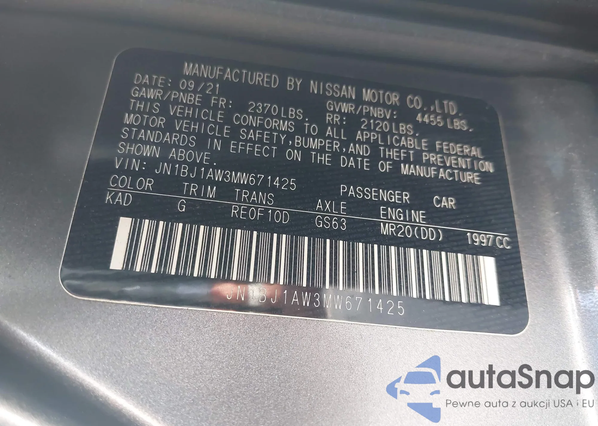 • VIN JN8AS5MV6FW758601