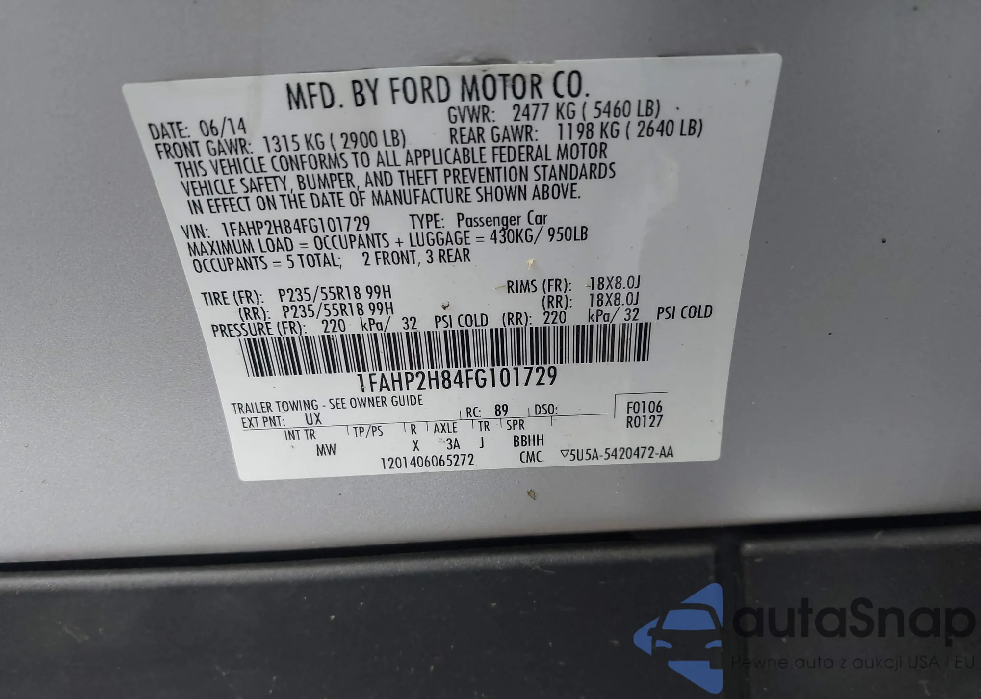 LOT: 42864461 VIN: 1FAHP2H84FG101729
