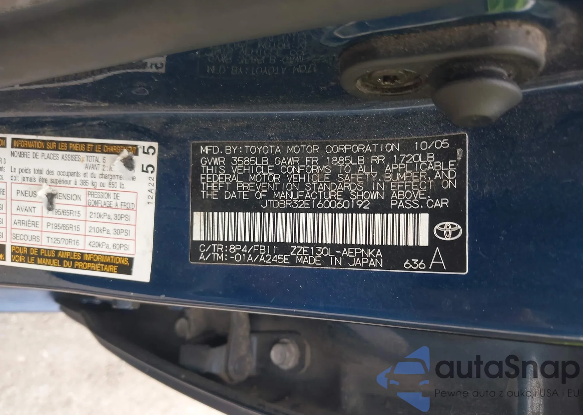 LOT: 43017053 VIN: JTDEPMAE2NJ197354