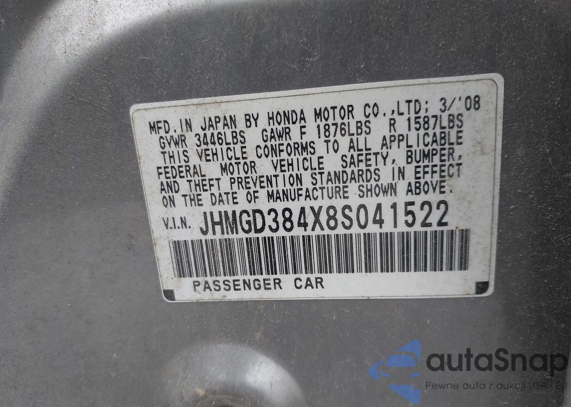• VIN JHMGD384X8S041522