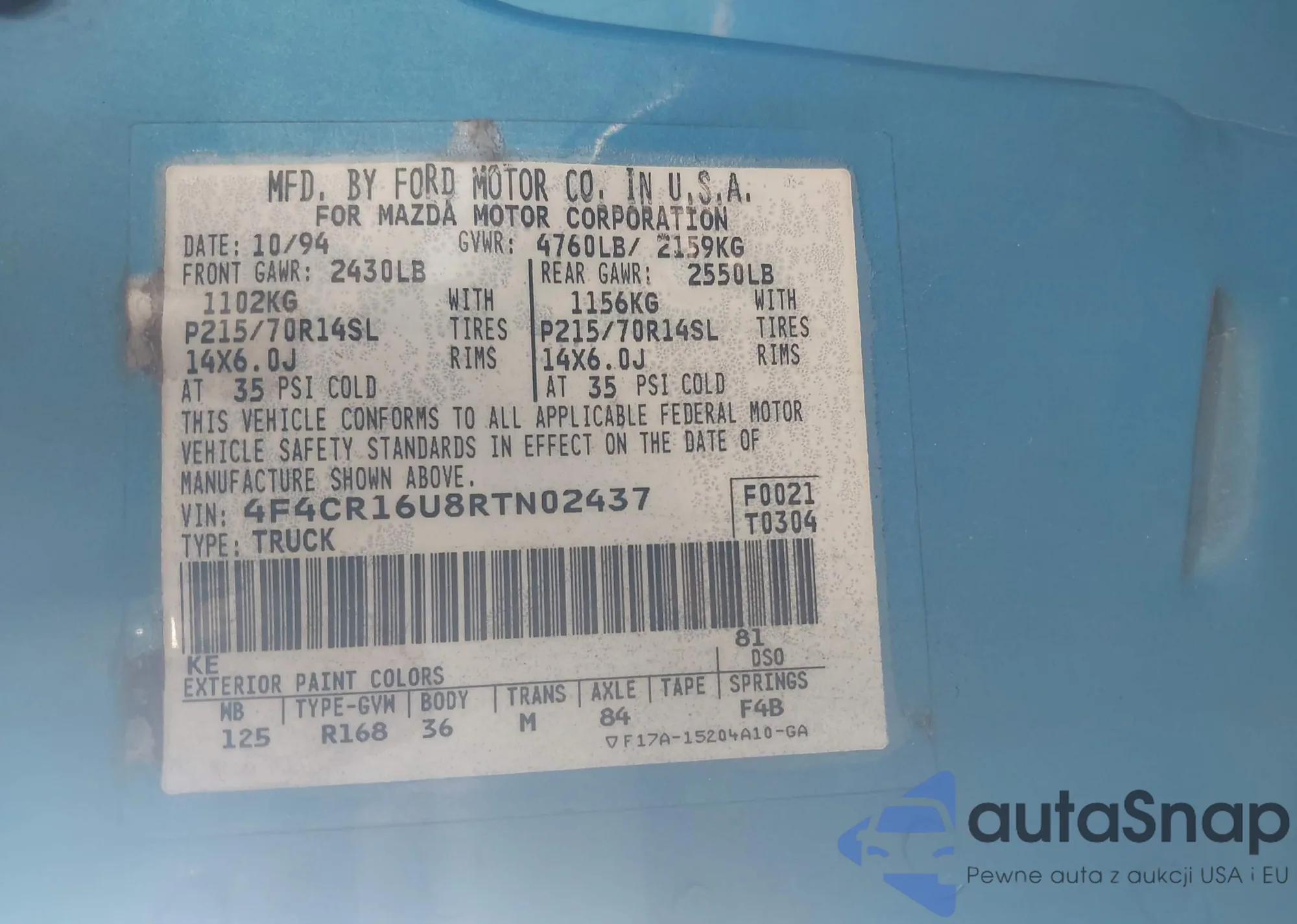 • VIN 4F4CR16U8RTN02437