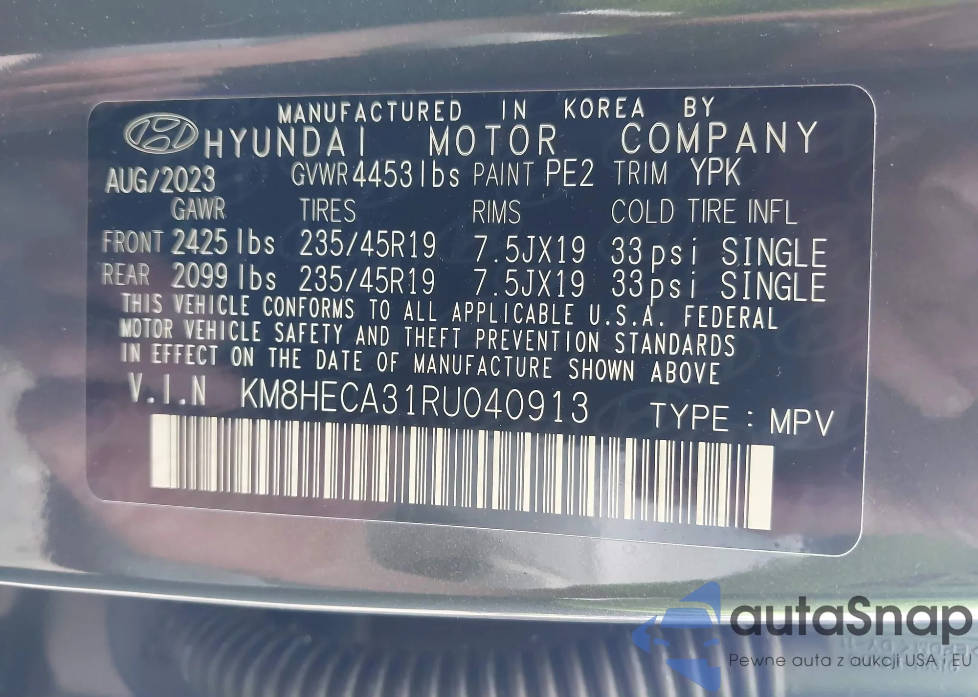 LOT: 42070734 VIN: KM8HECA31RU040913