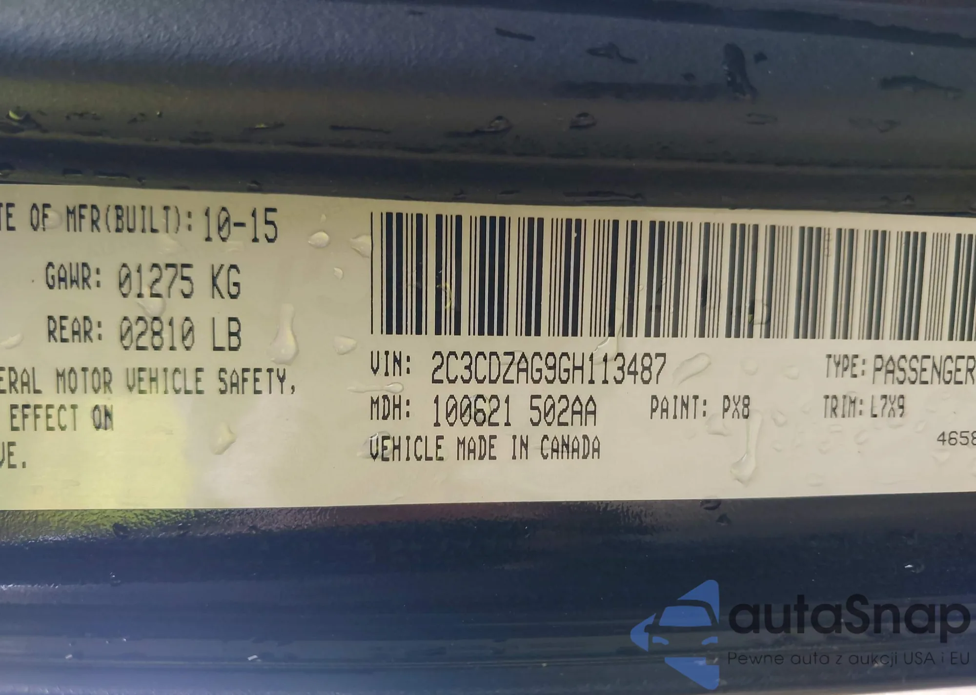 • VIN 2C3CDZAG9GH113487