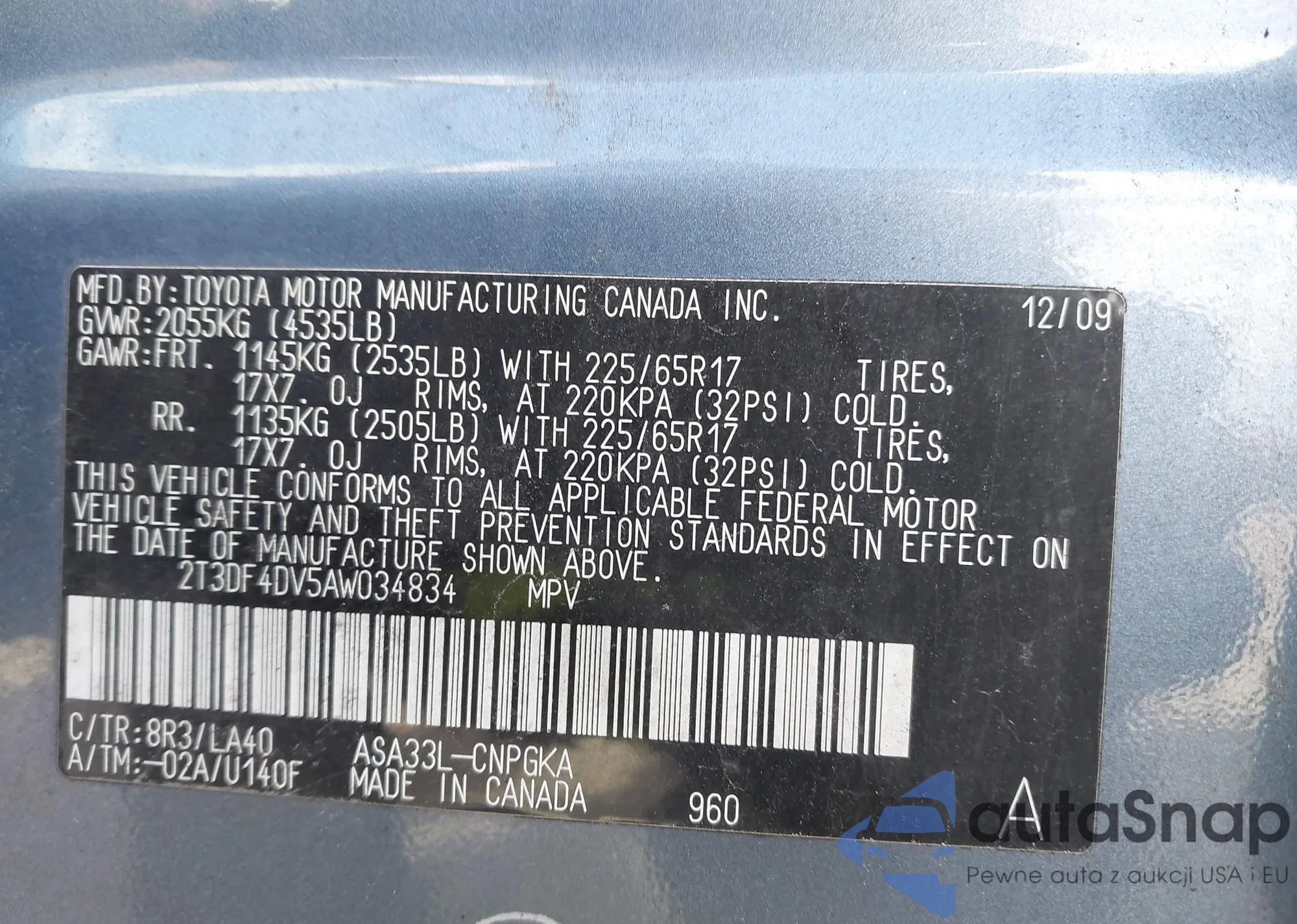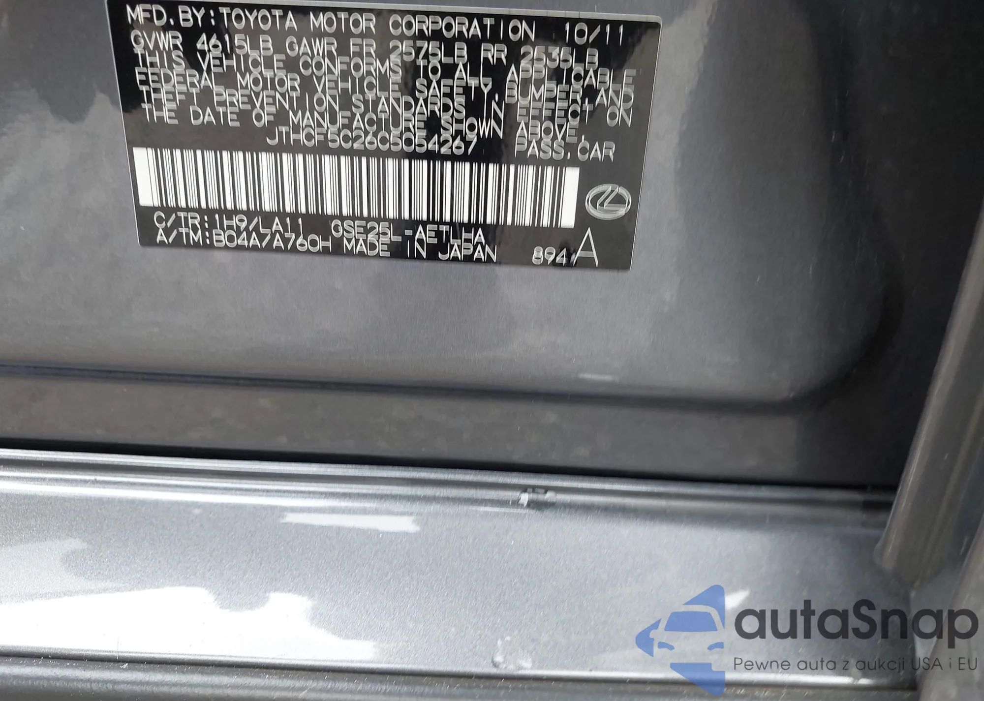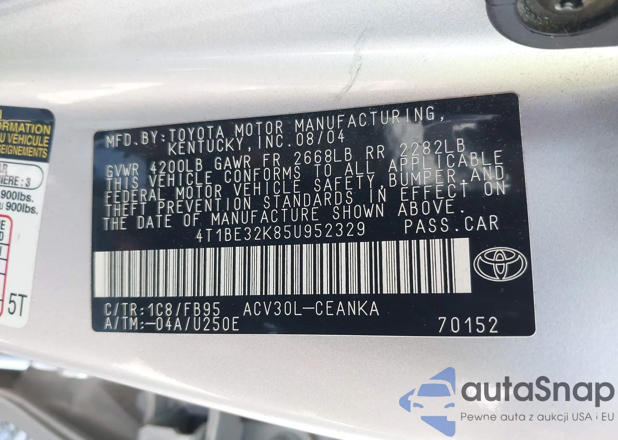 LOT: 43132677 VIN: JTEGP21A870144236