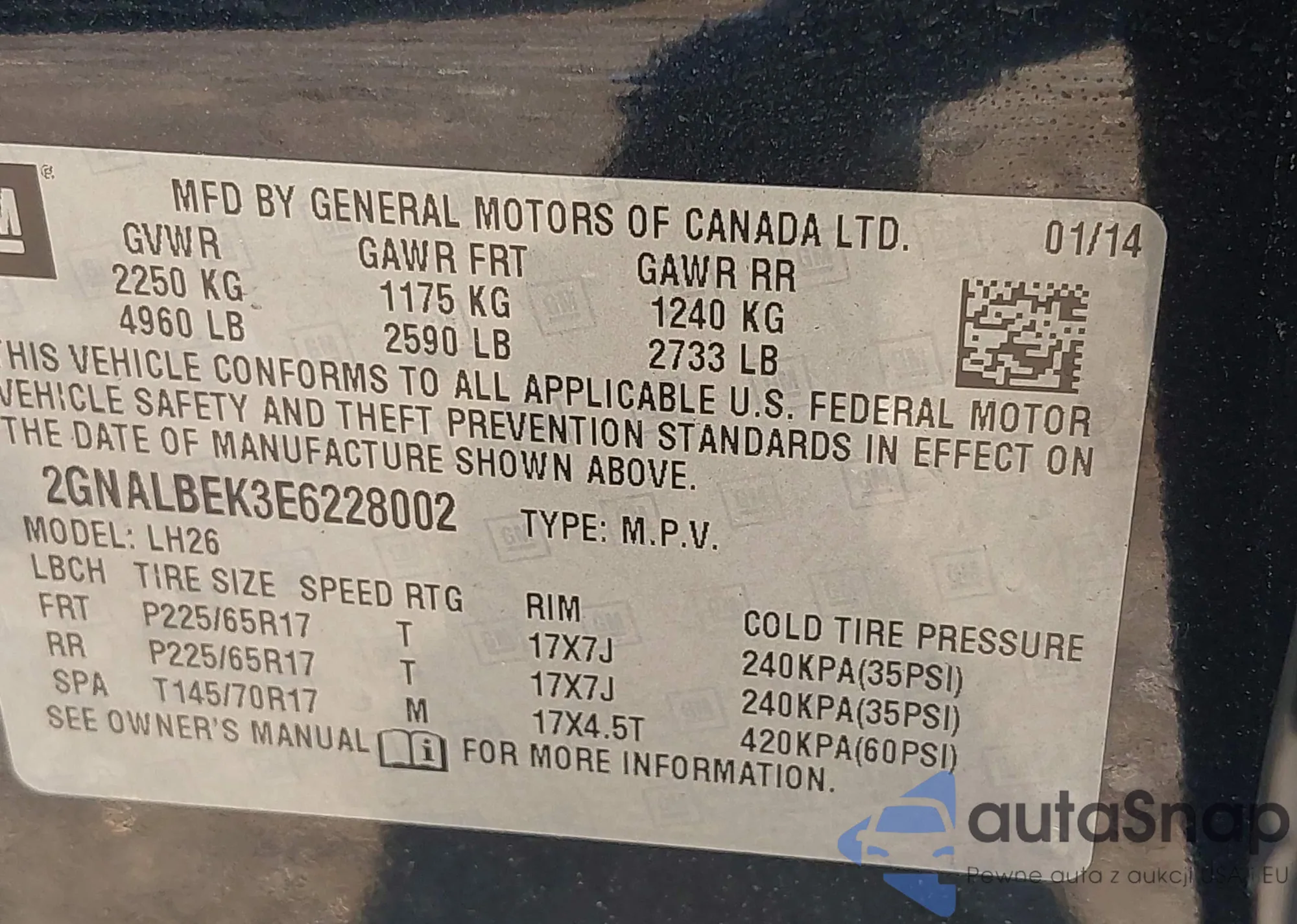 • VIN 2GNALBEK3E6228002