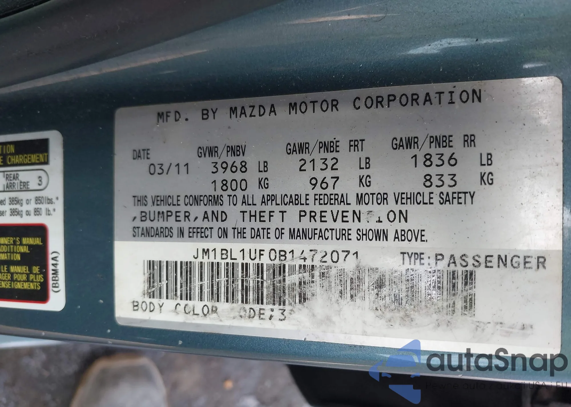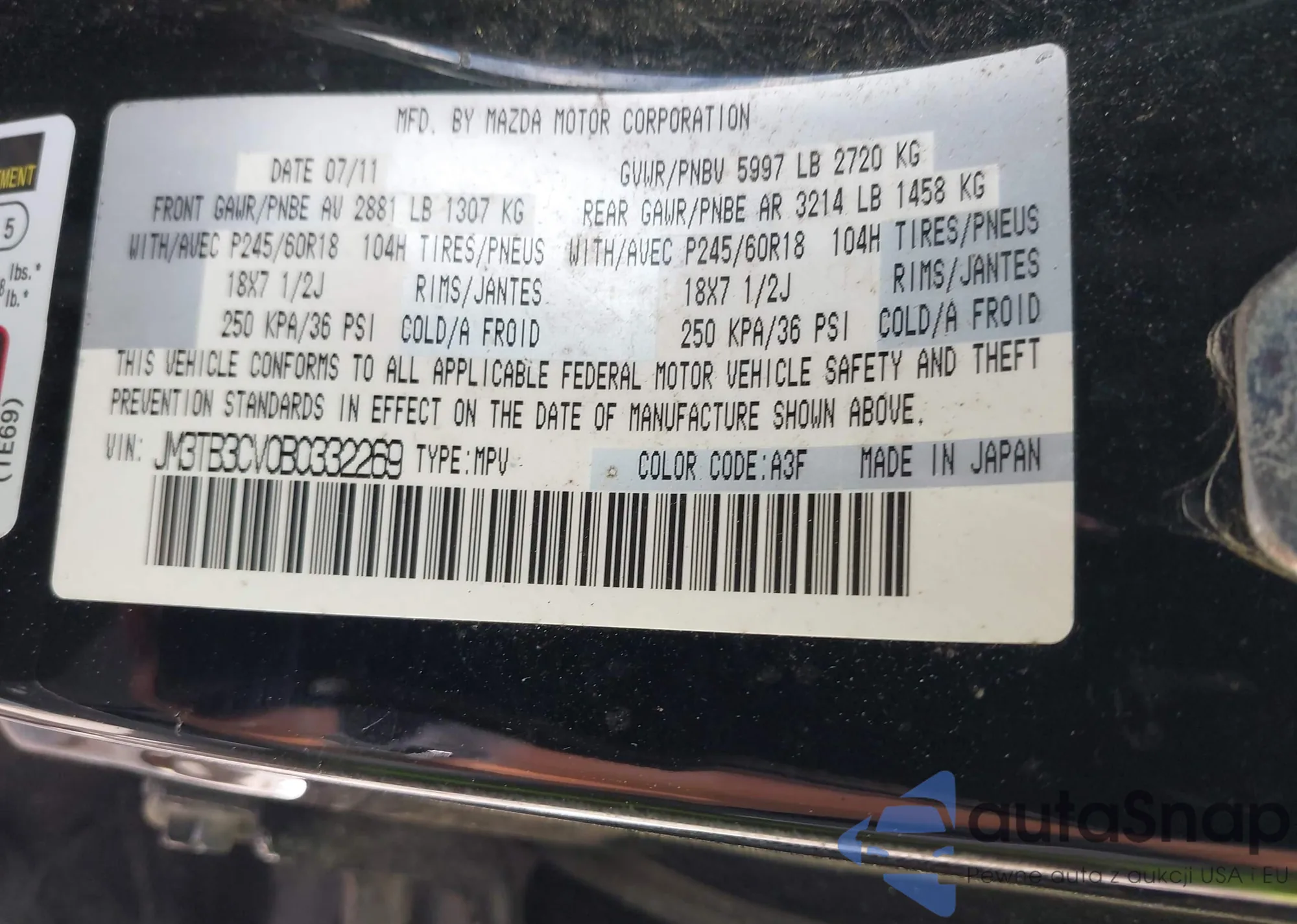 • VIN JM3TB3CV0B0332269