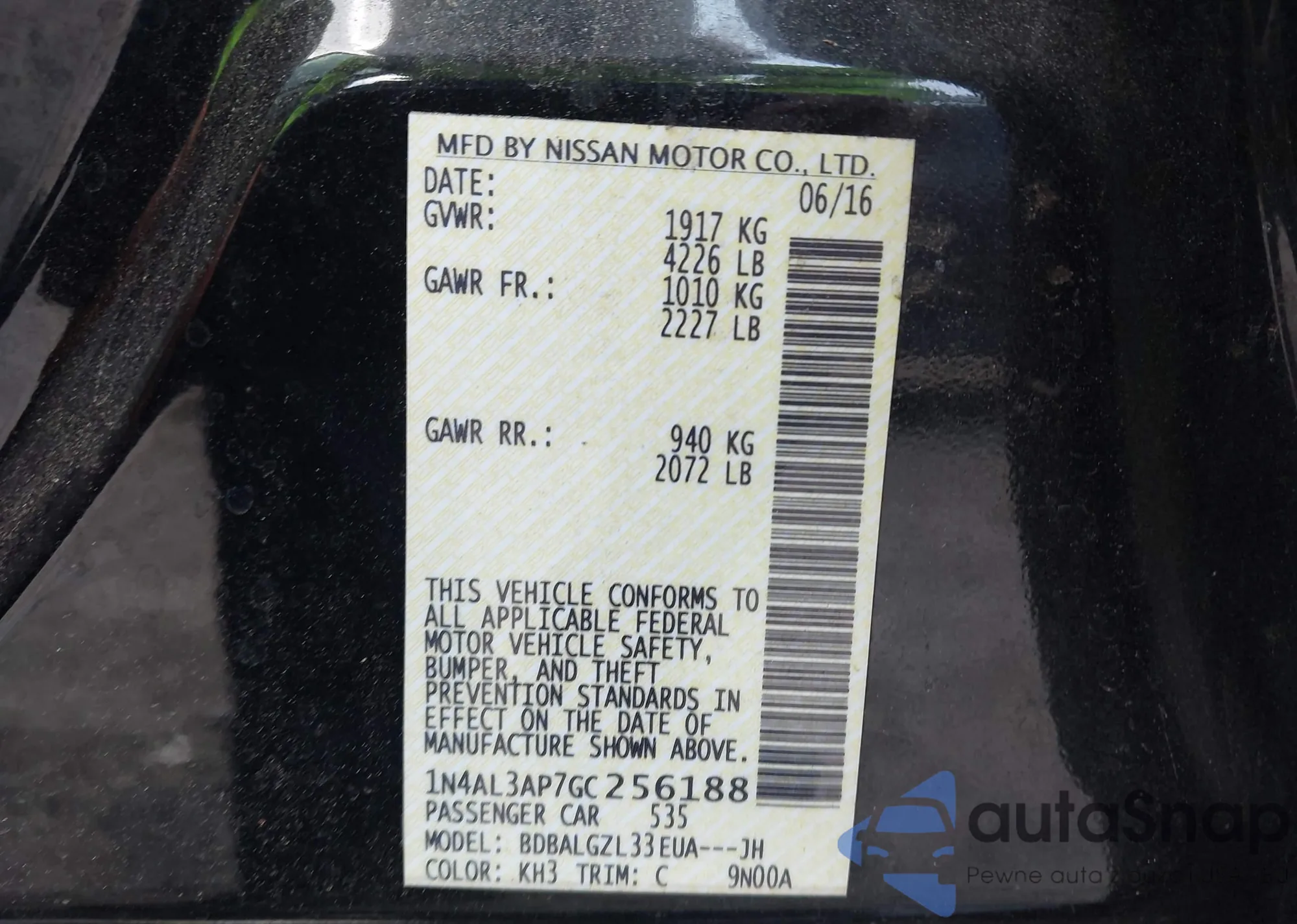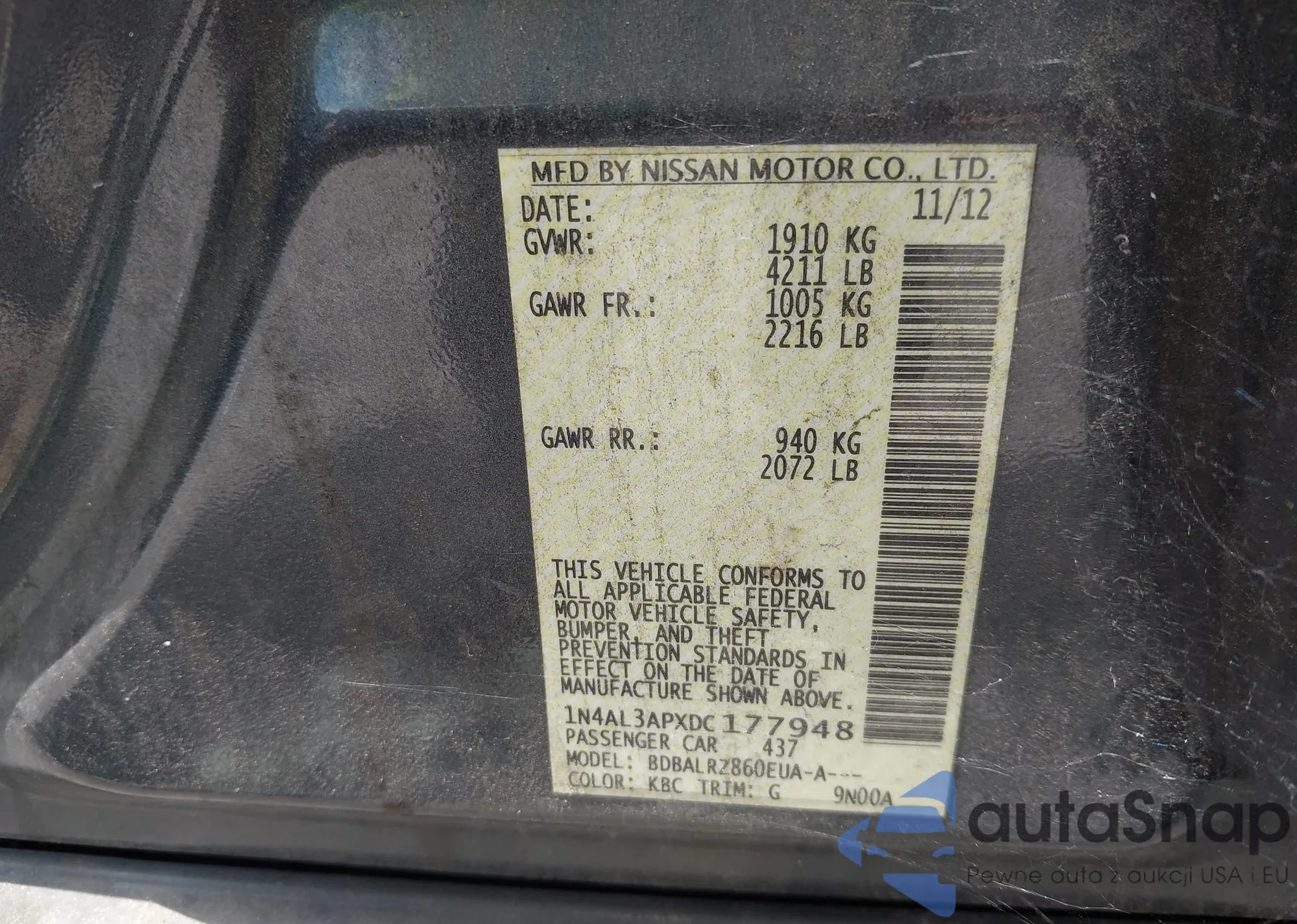 LOT: 43100457 VIN: 1N4AA5AP6AC871887
