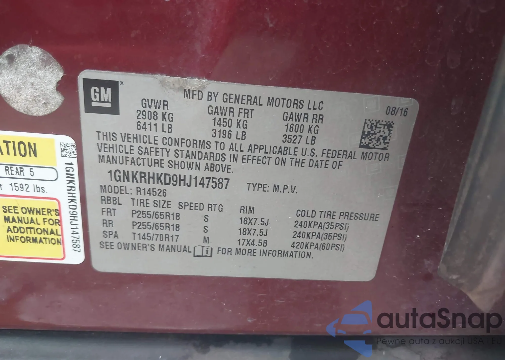 LOT: 42807397 VIN: 1GKKVPKD3EJ195147
