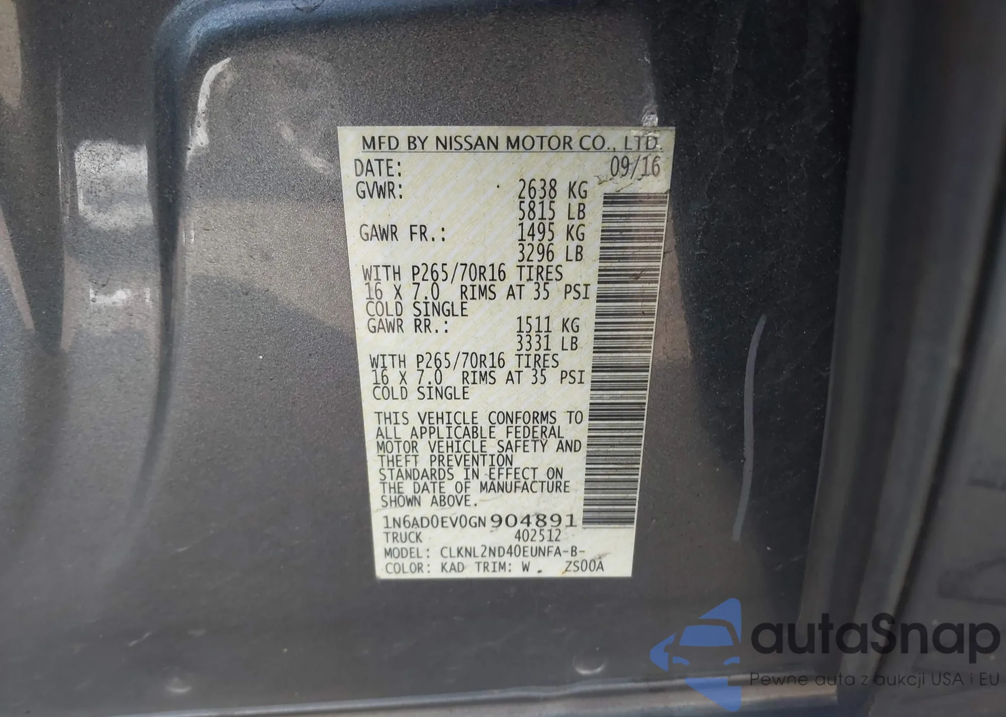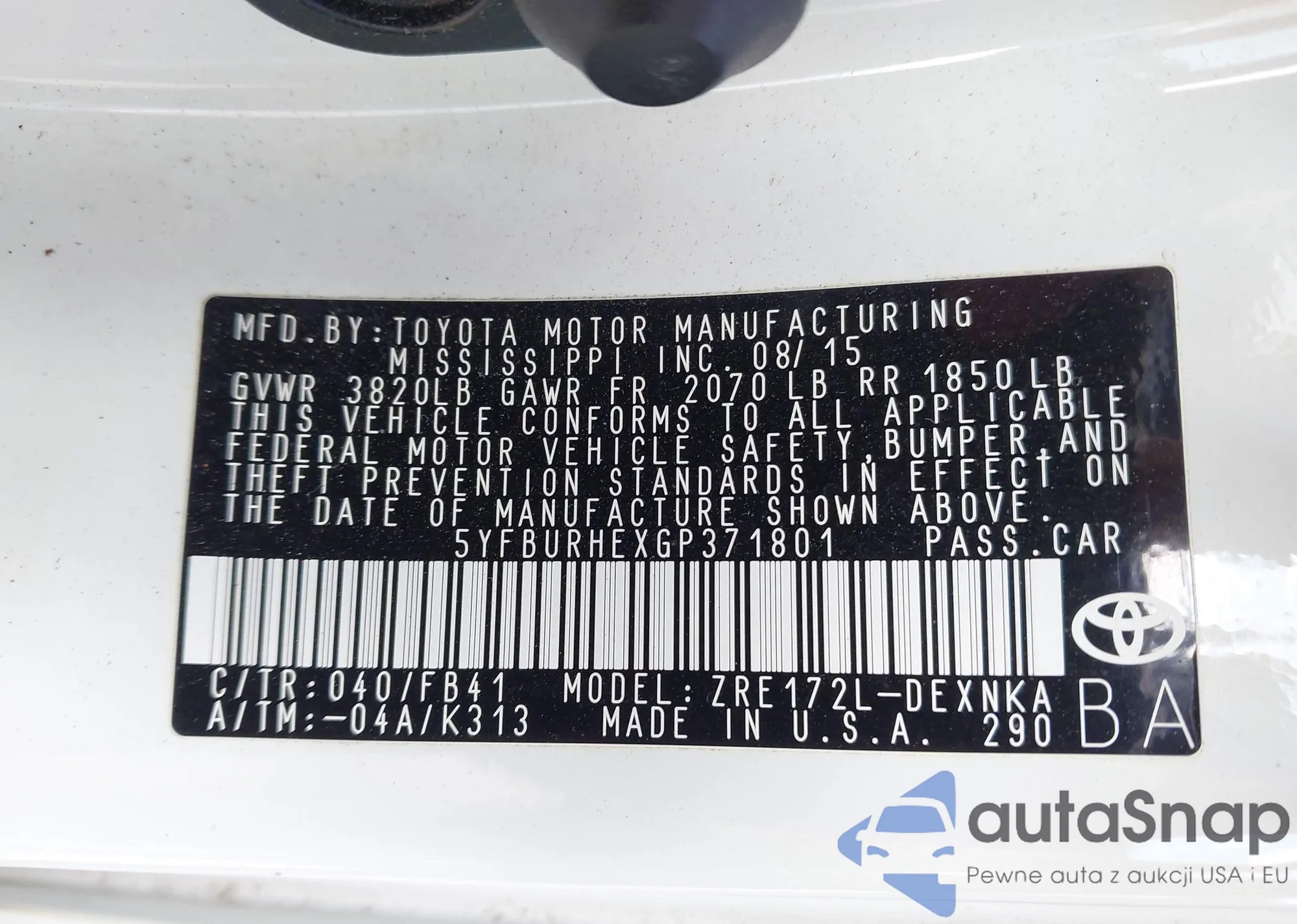 • VIN 1N4AL3APXGN308577
