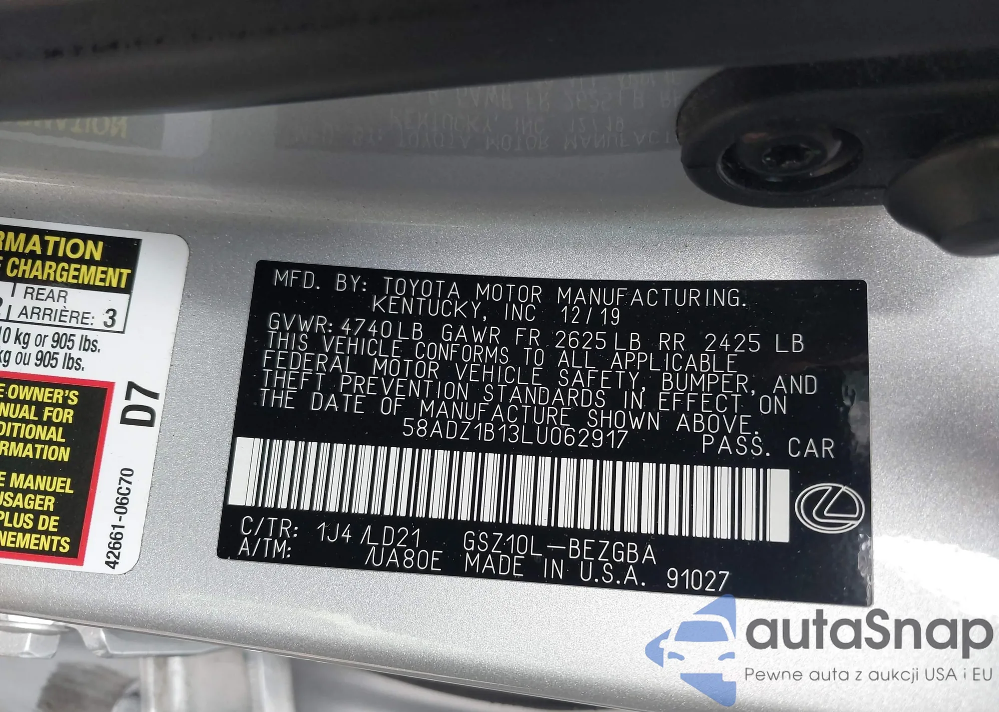 LOT: 42965803 VIN: 58ADZ1B13LU062917