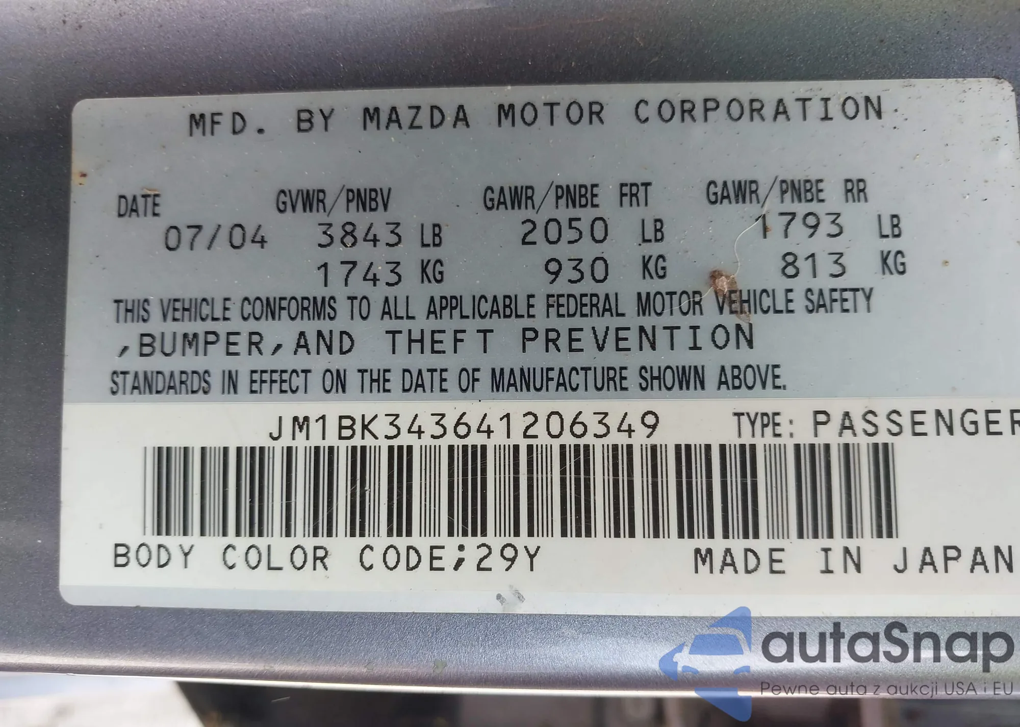 LOT: 42972685 VIN: JM1BK343641206349