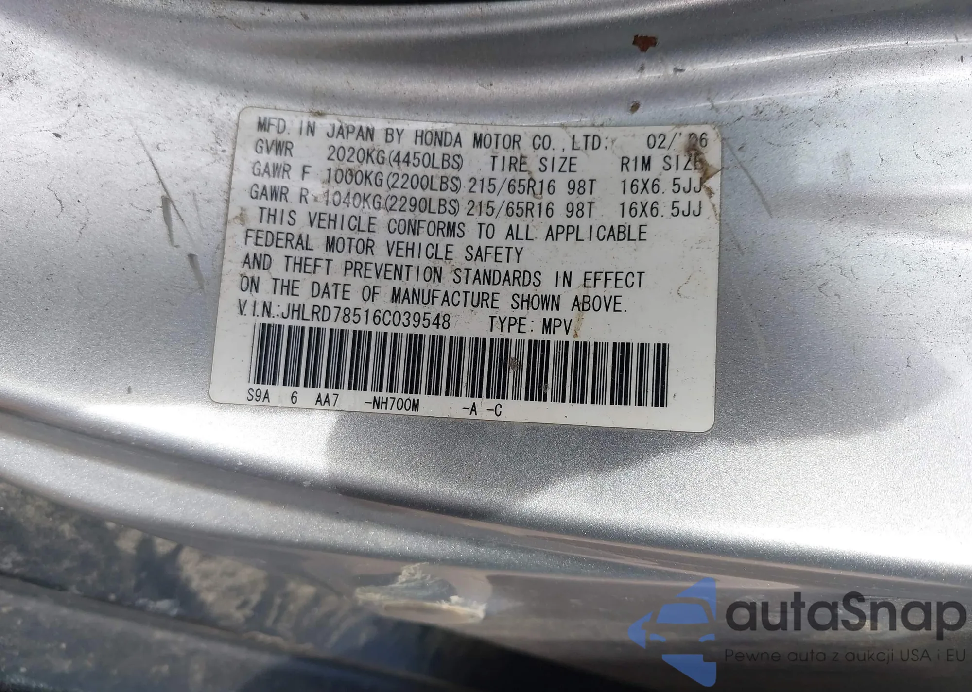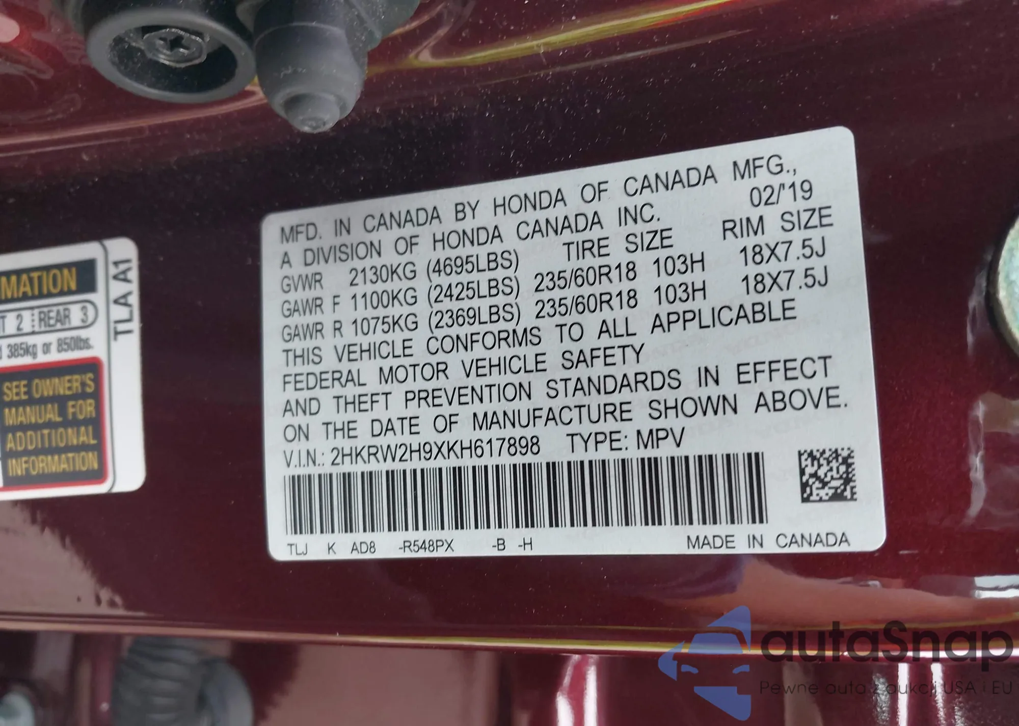 • VIN 2HKRW2H57LH694257