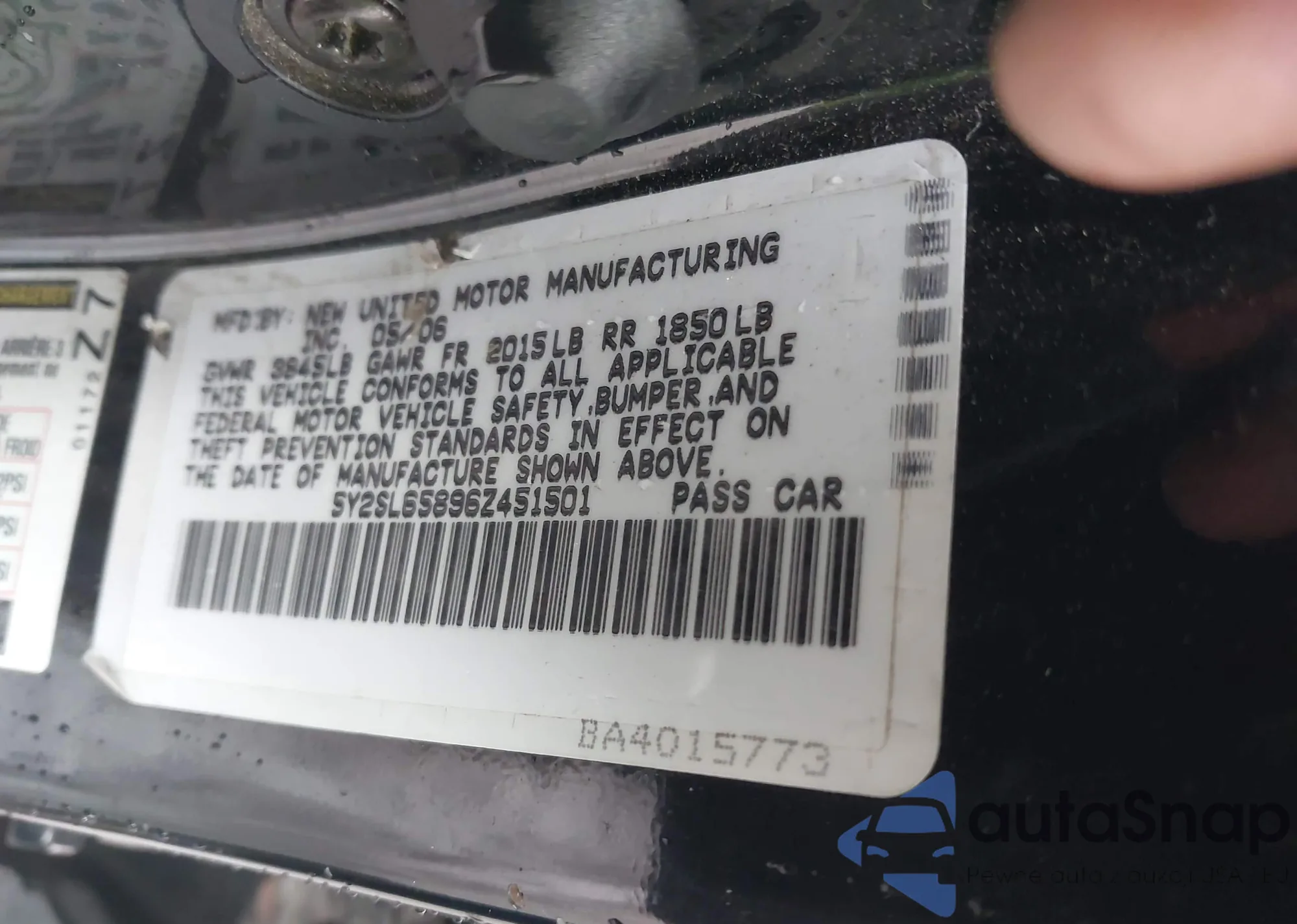 • VIN 5Y2SL65896Z451501