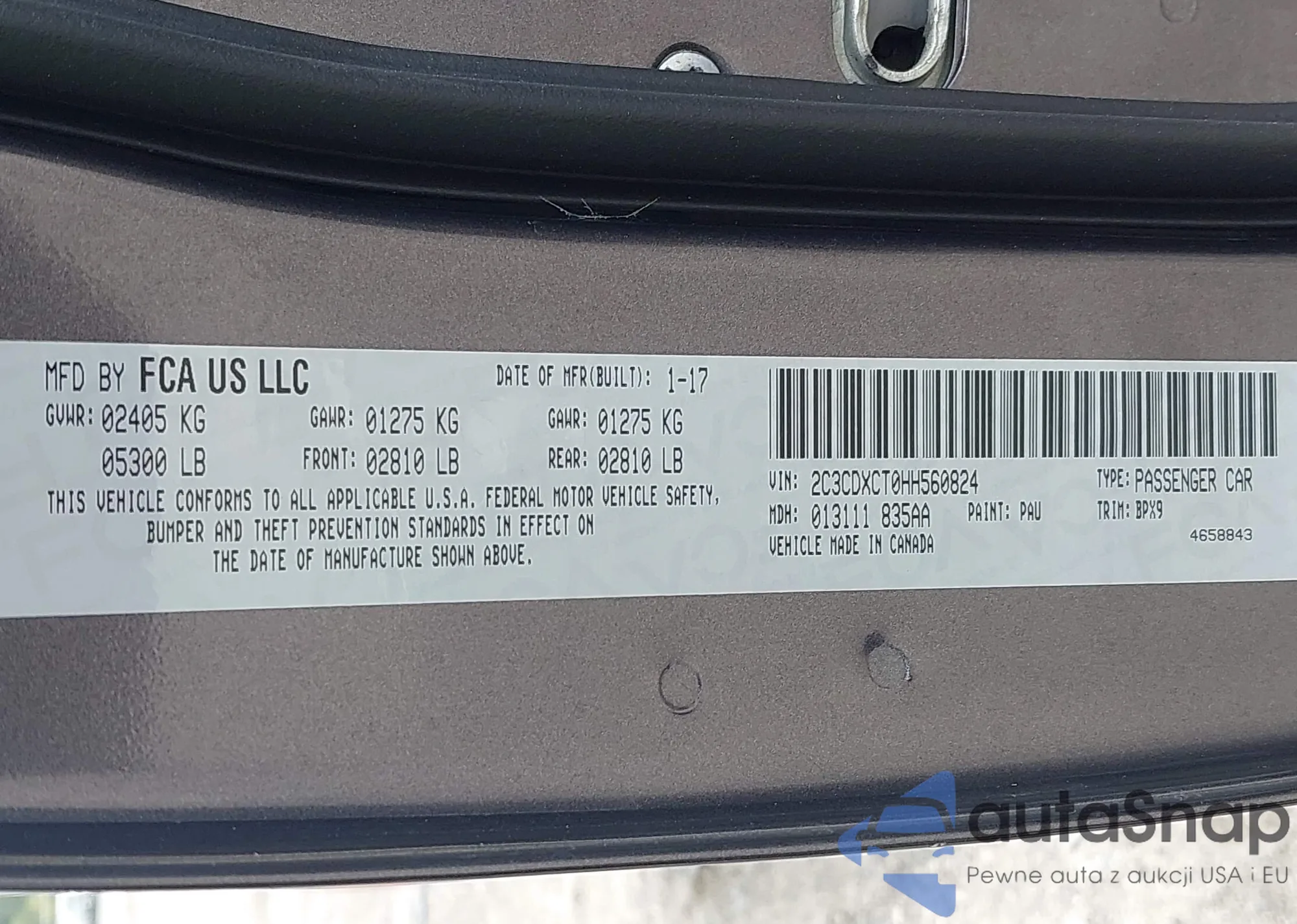 • VIN 2C3CDXCT0HH560824
