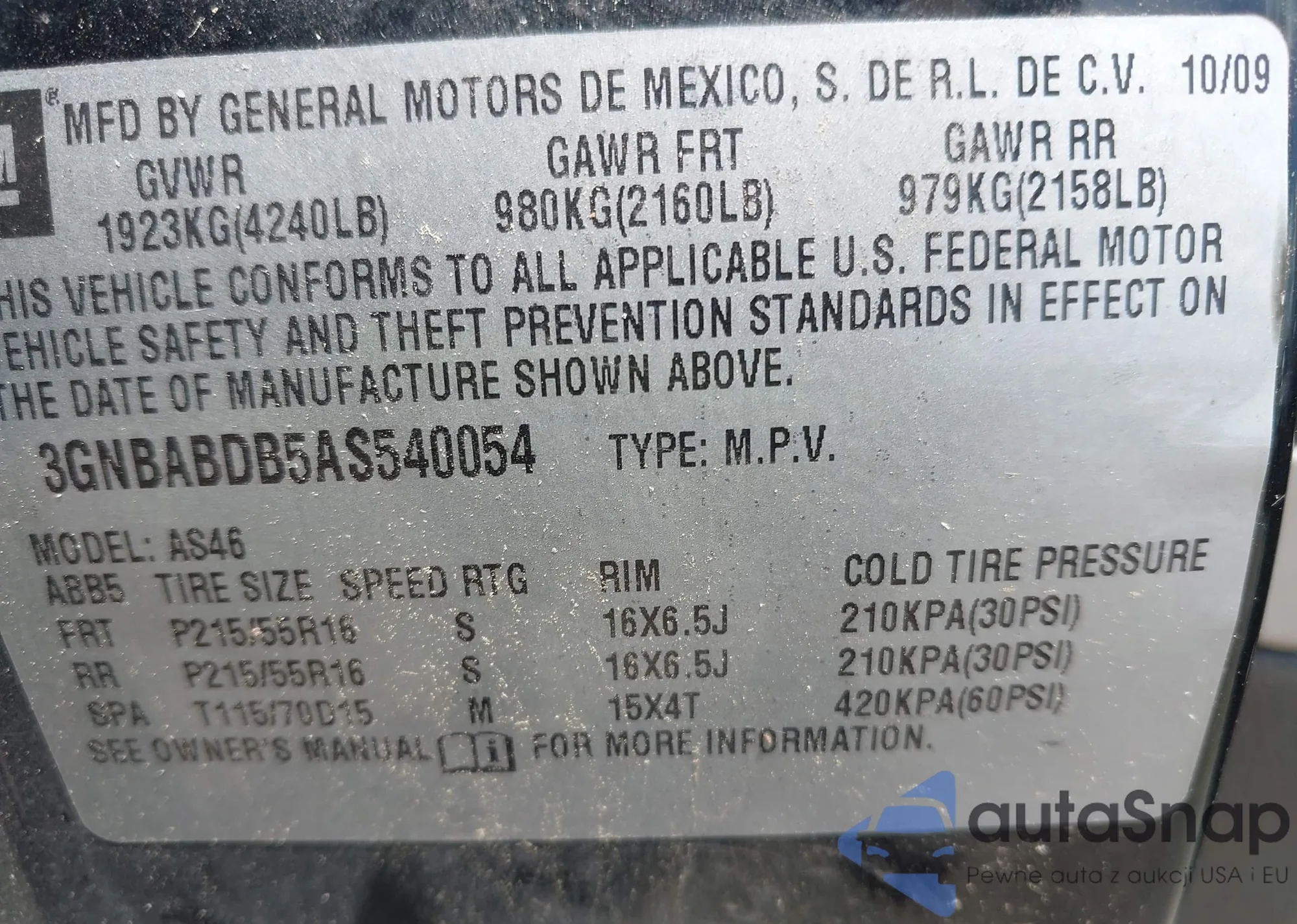 • VIN 3GNBABDB5AS540054