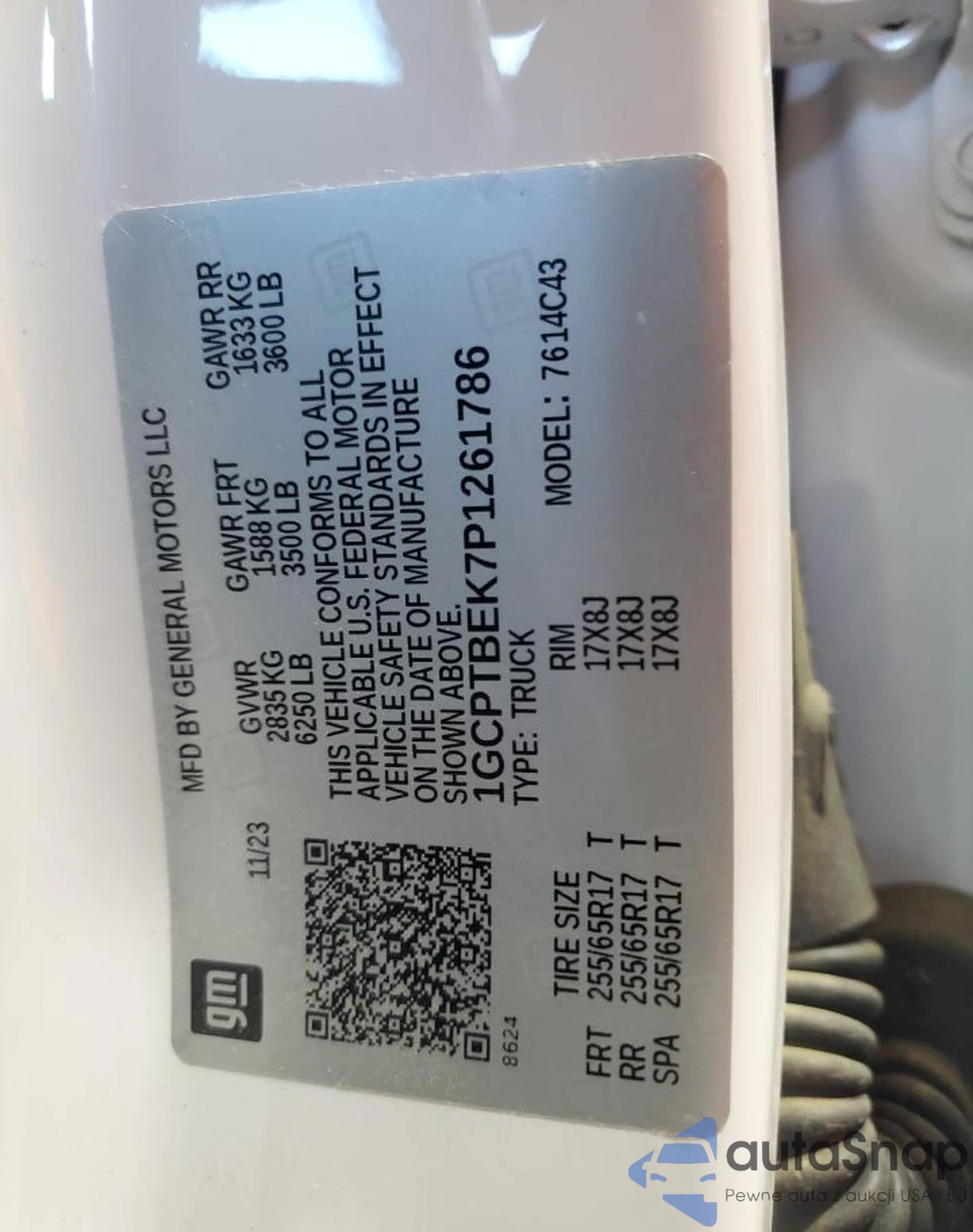 • VIN 1GCPTBEK7P1261786