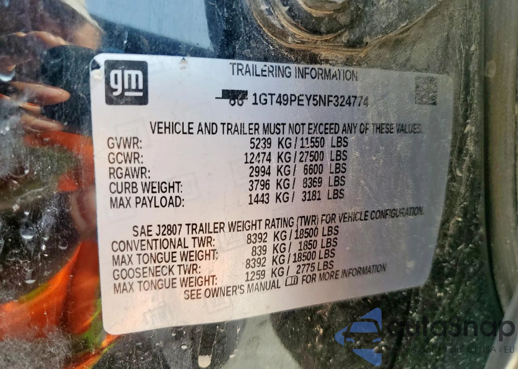 • VIN 1GT49PEY5NF324774