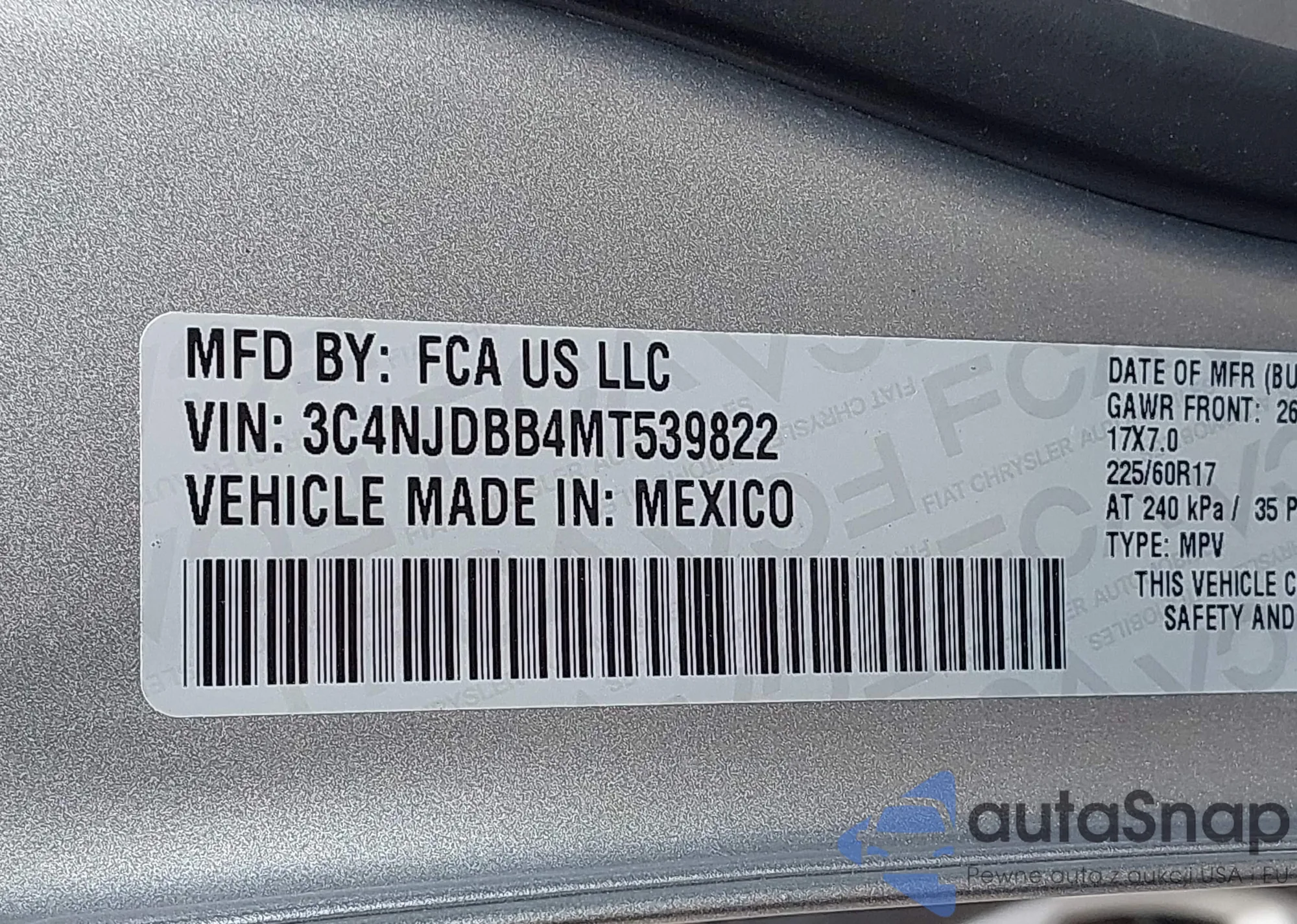 LOT: 42960207 VIN: 3C4NJDBB4MT539822